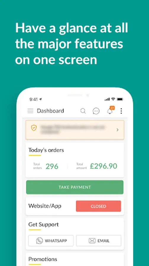 My Business Hub / previously (My Takeaway) Management tool allows you to monitor key aspects of your business. Open and close your online site, view total orders and revenue taken for a given period, plus change and configure your settings at a click of a button. Live support will help you with any problems or questions you might have and get the latest information about new features and versions with push notifications—everything you need at the click of a button.