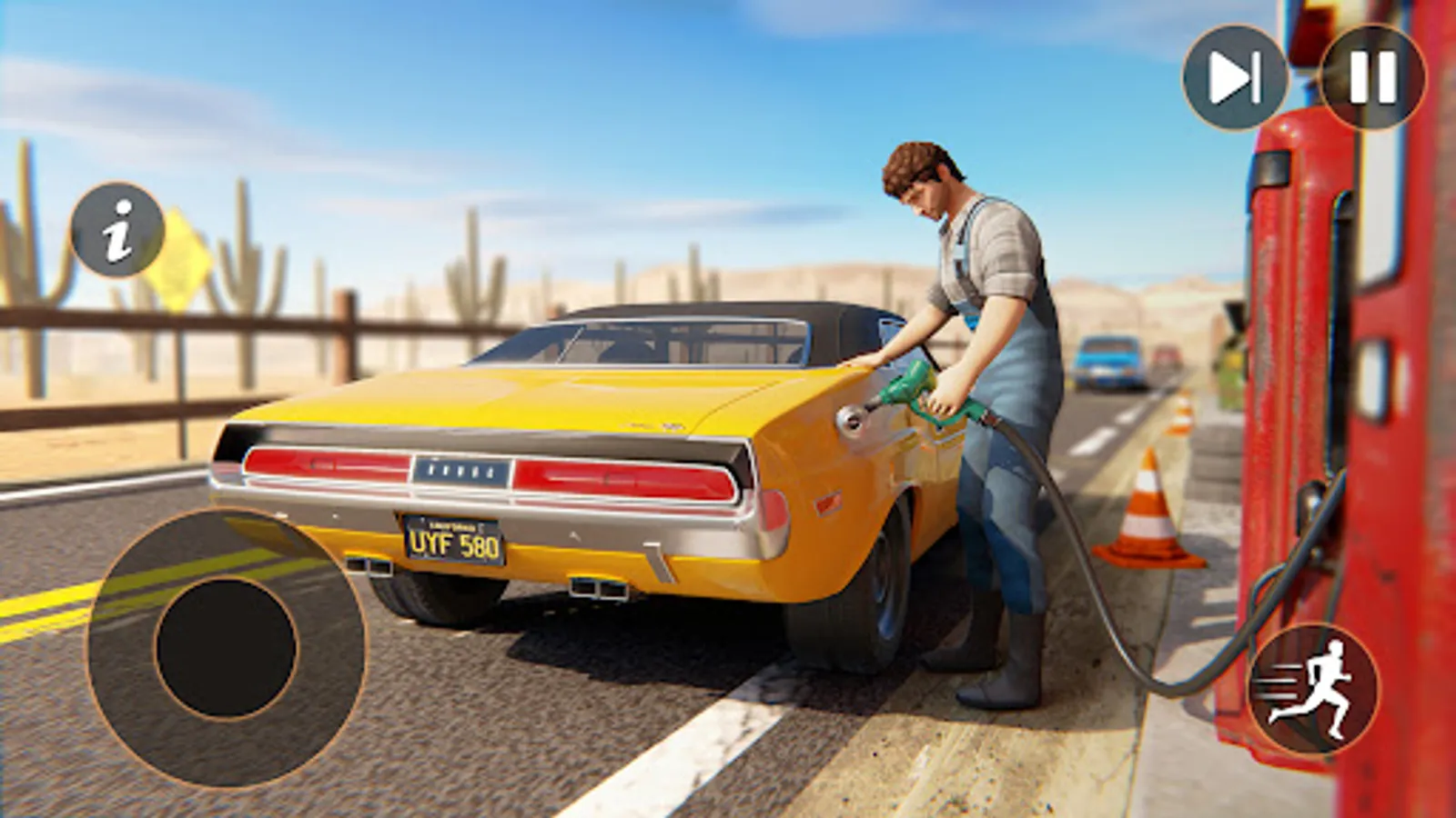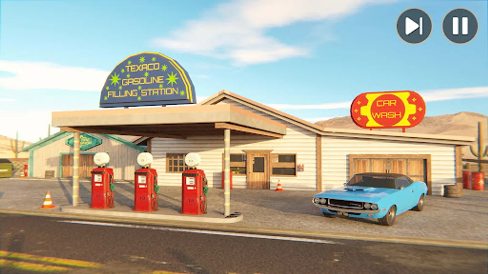 Run and maintain a gas service station junkyard sim to enhance your business.
