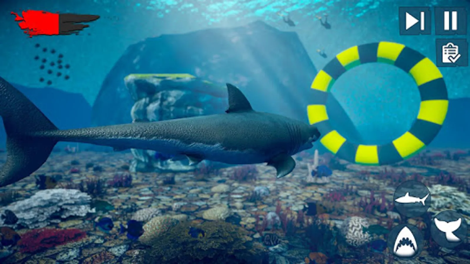 Amazing world of hungered angry shark to experience the underwater shark game.