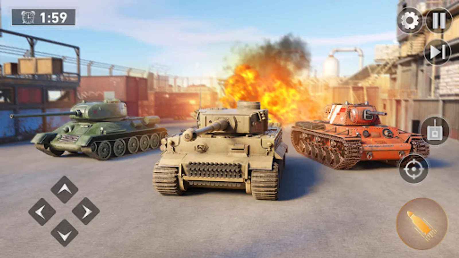Drive an army tank to join war of tanks to kill enemy in tank battle war game.