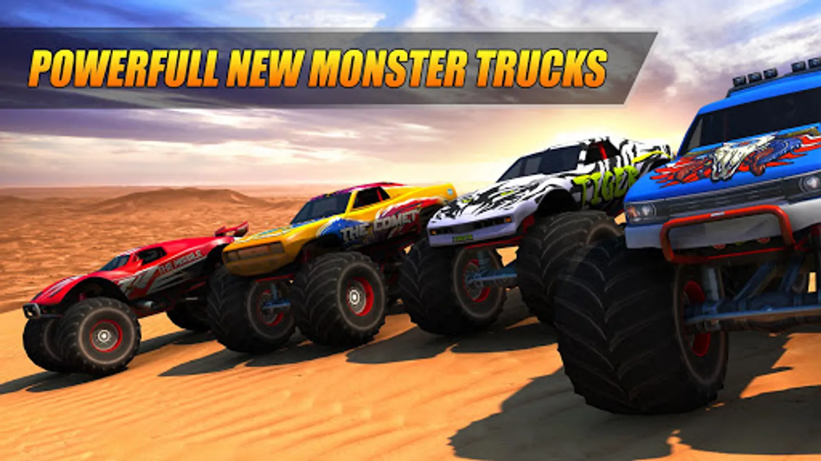 Dominate every other vehicle in Monster Racing Truck Assault, smash your opponents rides! You must win in order to advance and unlock new trucks. Spend earnings on valuable upgrades, and finish each mission in first place. Don't let the competition get in your way!