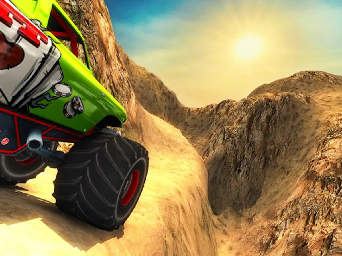 Experience a new monster truck driving on mountain and climb hill on side steep 3d paths.