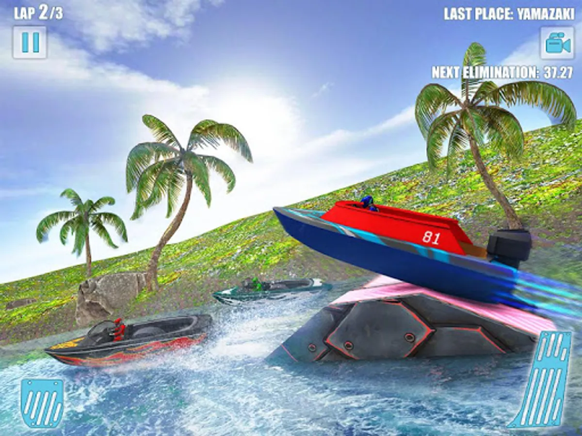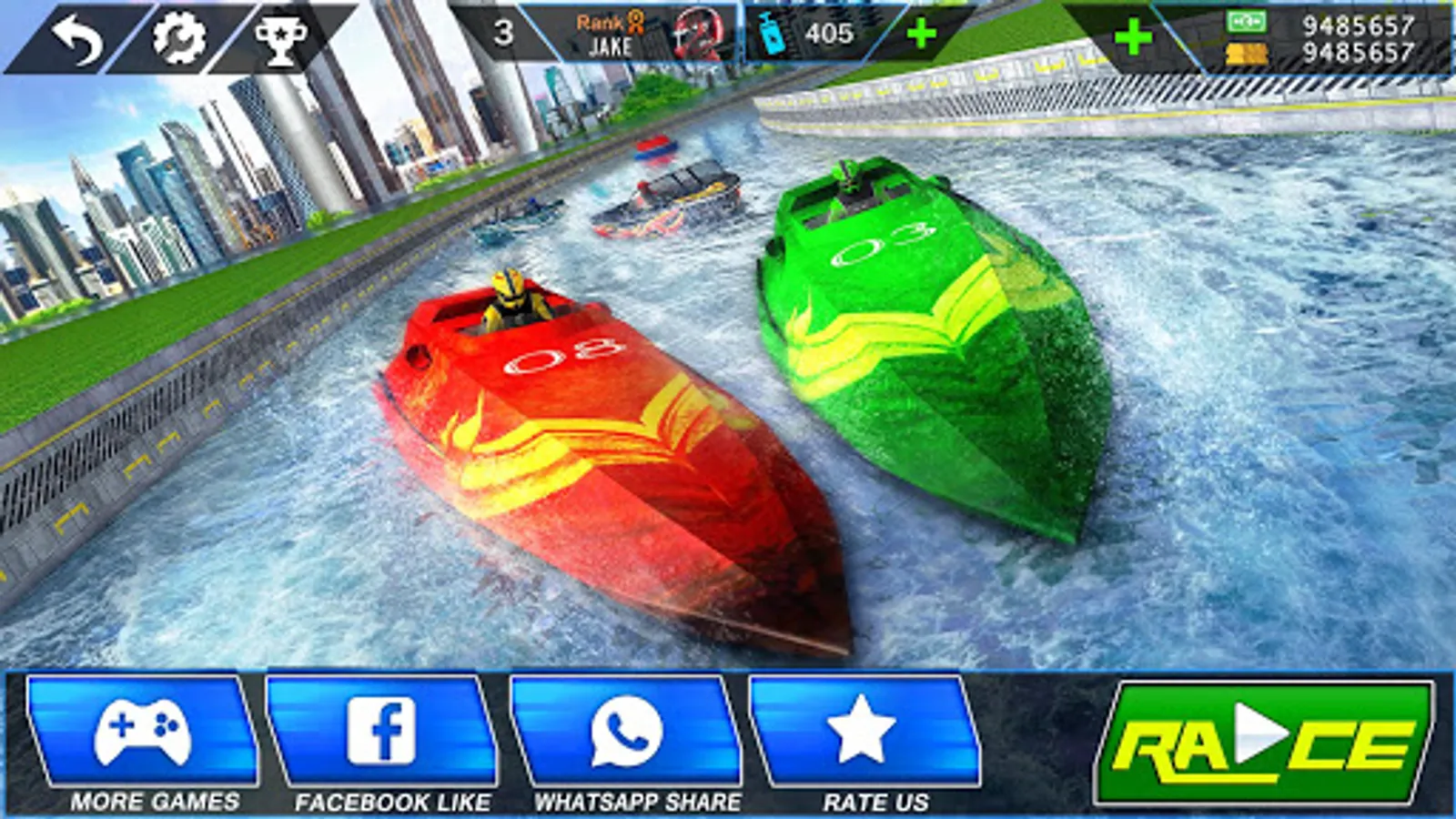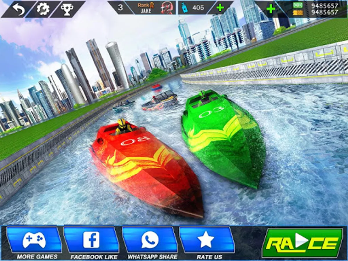 As a motorboat rider perform stunts and jumps through water tides. Ride speed boat to make water sprint by racing through sharp turns at breakneck speeds on lakes and rivers. Press the speedy cruiser throttle in the splashing water to beat the Waverunner racers. Race powerboat through splashing water waves to make huge air jumps. As a reckless boat racer making huge rooster tails and collect rocket missiles to destroy rival jet boats.