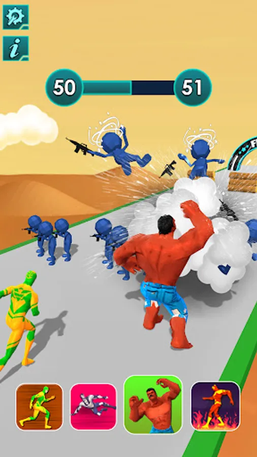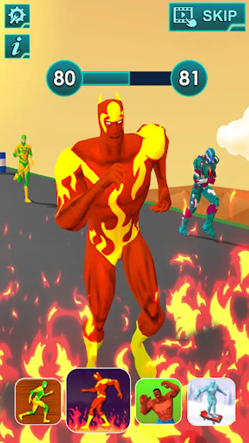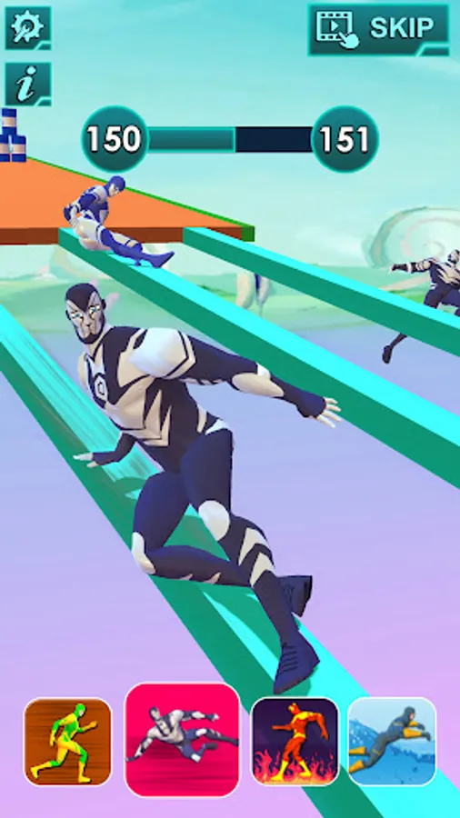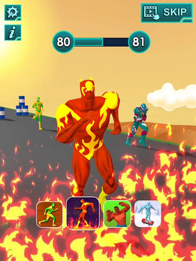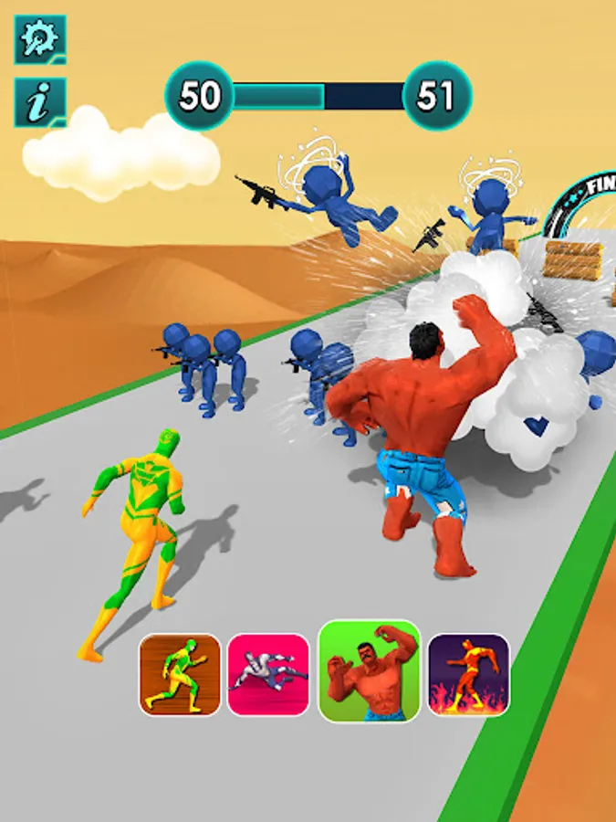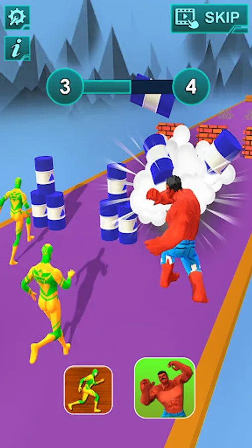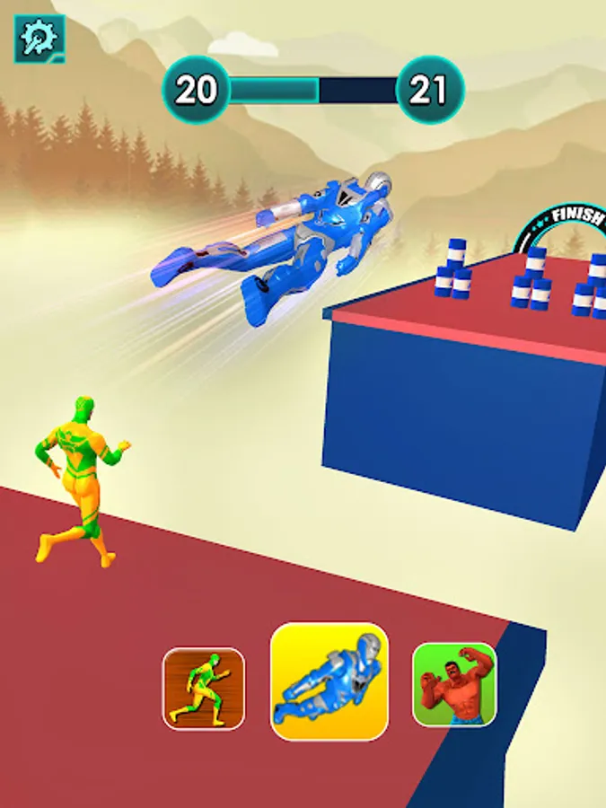 The superhero transform game is a fun racing game, where each obstacle is designed for a suitable character. In a hero run game, you need to transform one hero to another to match the superhero ability of the obstacle. Hero rush race tracker needs sharp attention and concentration skills to win the free superhero jumper game.