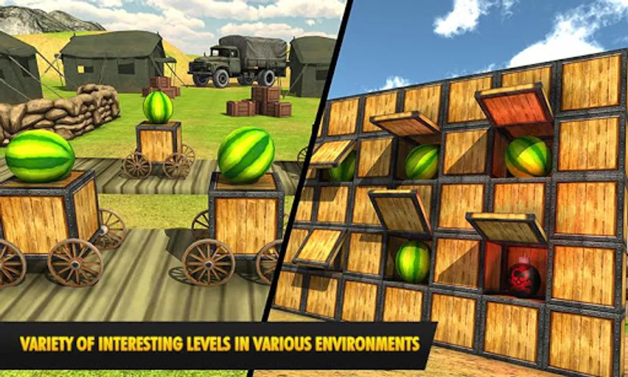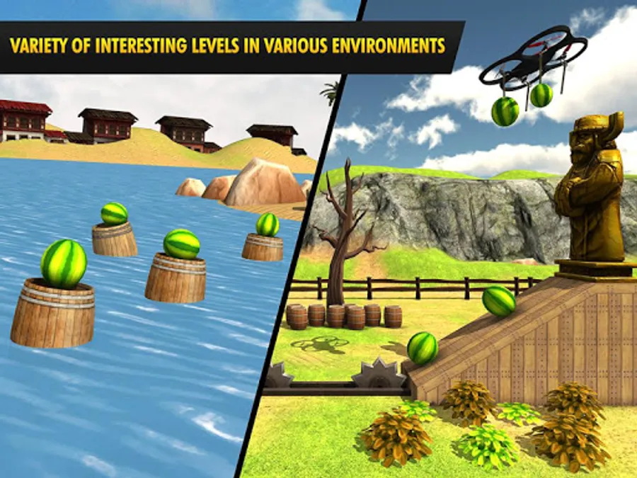 So it’s time to take gun in hand as a ultimate shooter and hit the moving targets with sniper bullets. You have to prove yourself as a expert shooter of fixed targets that are flying with helicopters and rotating. The Watermelon Shooter 3D Game is the only first person shooting game that includes all new features of modern fruit shooting adventure games. There is also a endless mode where you can slice the fruits without obstacle such as bombs and shells. This 3D shooting game is also for best archer shooters who love new shooting games.