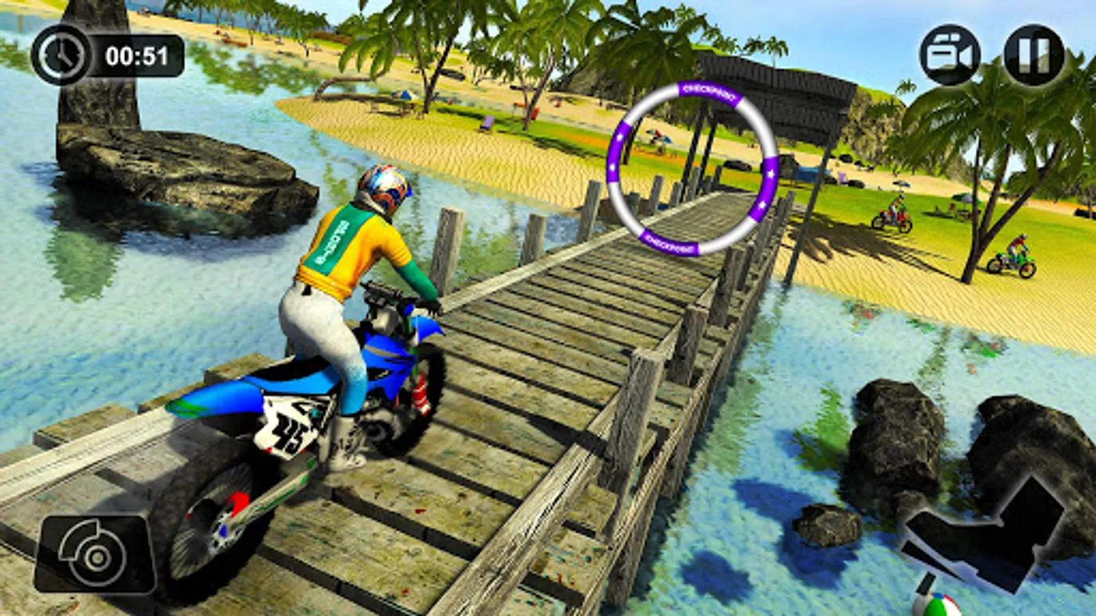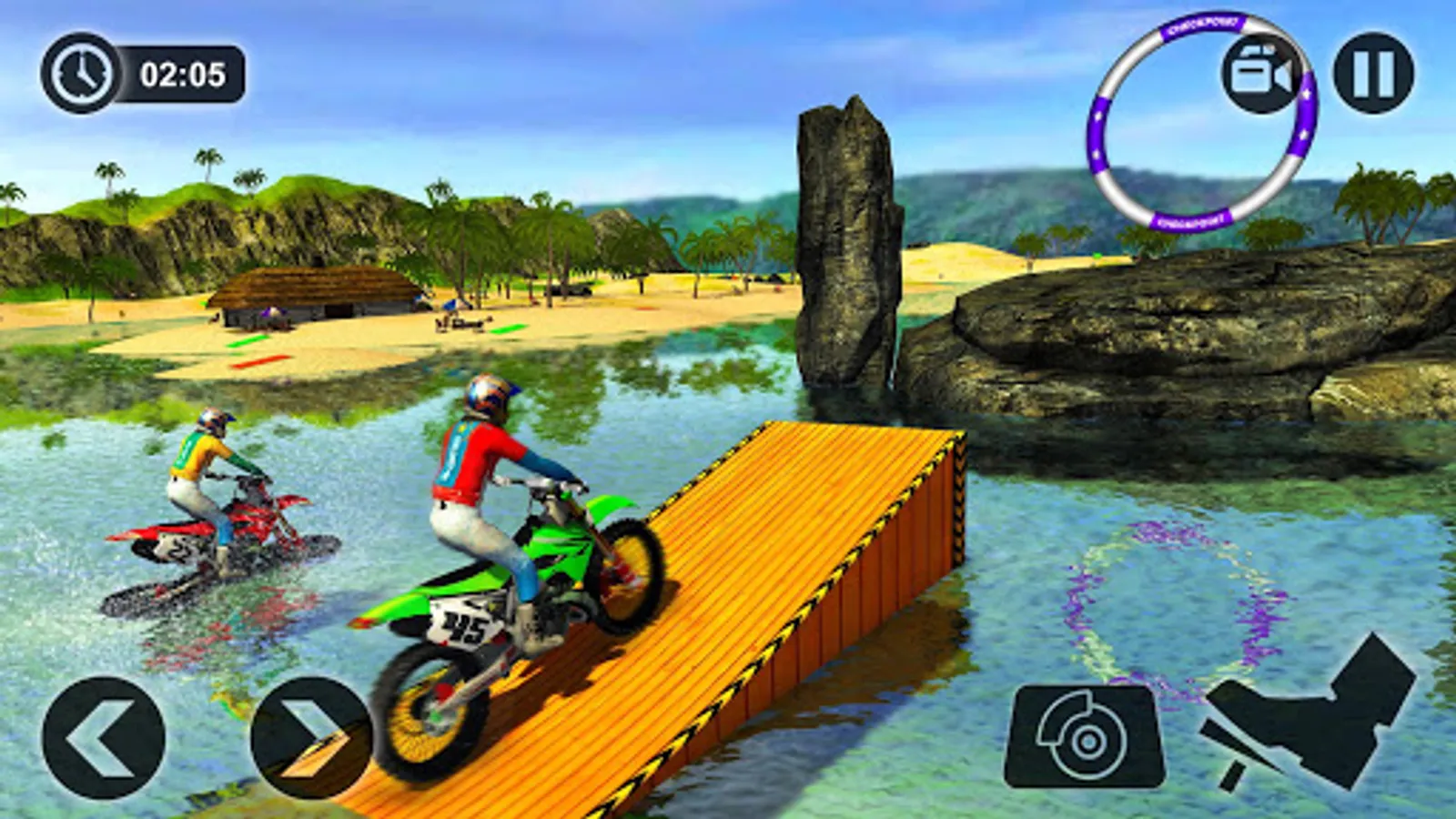 In Free mode ride your surfing bike with full speed to collect the check points on the beach sand. To unlock new wonderful luxurious motorbikes you have to win the bay race by driving floating motorbike through all checkpoints. Become the legend of beach racing by doing stunts and jumps with extreme modern motorbikes! Enjoy ocean rides with Beach Water Surfer Bike Racing.