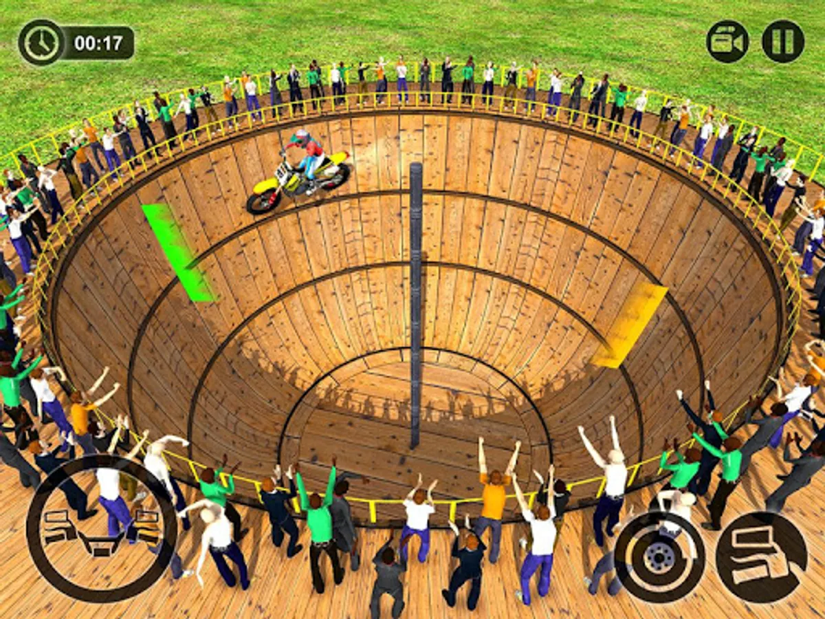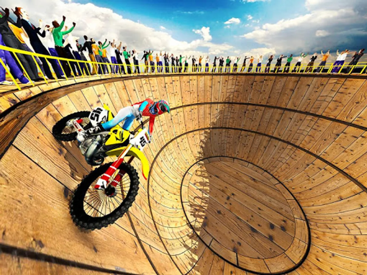 Stunt riding in death well is not a easy task you need to perform realistic rotation around the well with dirt bike stunts. Don't hit other heavy bikes and luxury motor bikes in the arena. With xtreme moto bike driving skills perform real stunts in stunt zone. The daredevil aerobatics can be a risk for life so drive safely in death well to become the legend of well of death. You need to be a fearless driver to complete all the challenging levels that are full of thrill and fun.