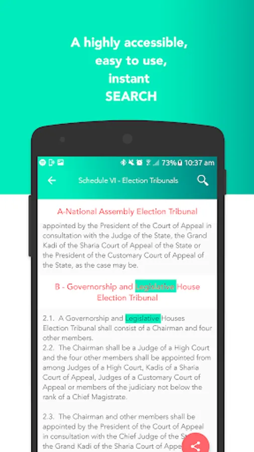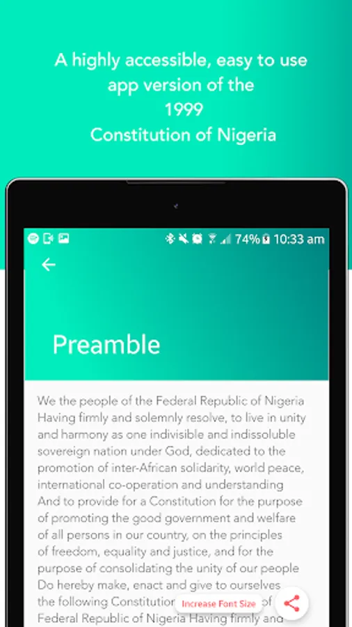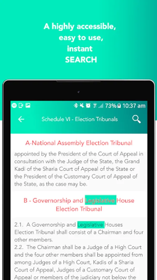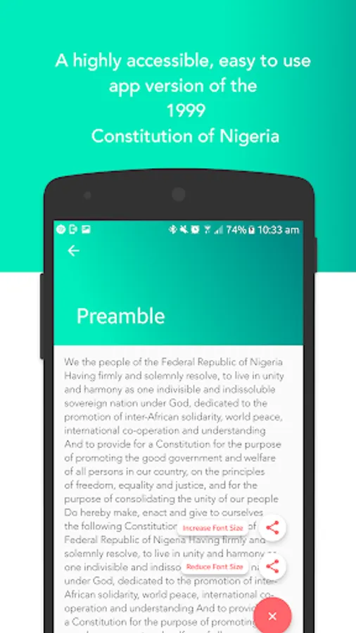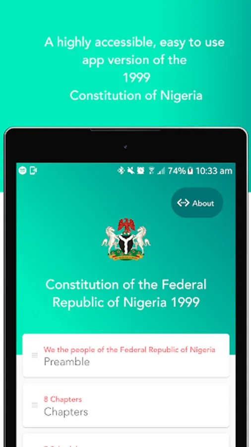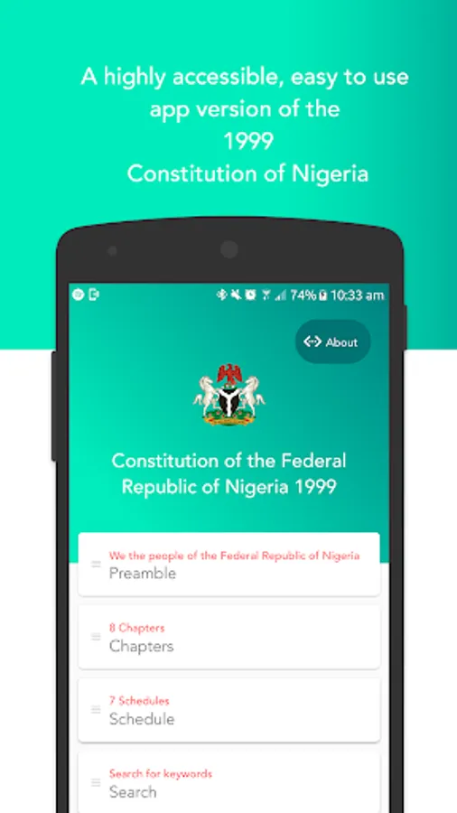 A highly accessible, easy to use app version of the Constitution of Nigeria the supreme law of the Federal Republic of Nigeria with it's 1st, 2nd and 3rd Amendments.