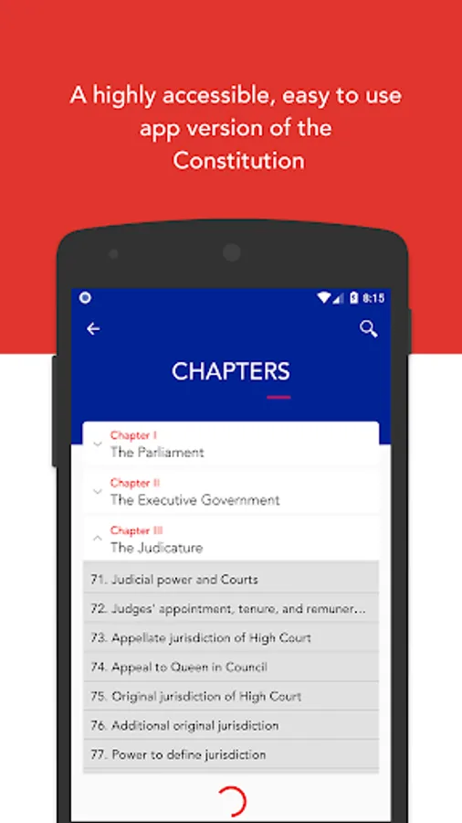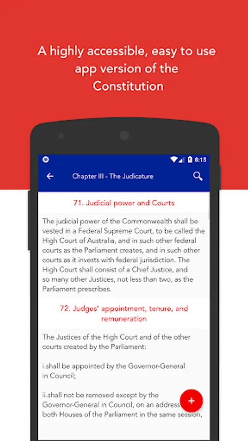 The app also contains numerous links to Australian case law accessible via the Australasian Legal Information Institute (AustLII) website (internet connection required) and aims to be a useful companion guide to the study and practise of Australian Constitutional Law.