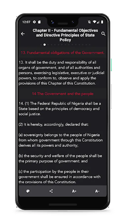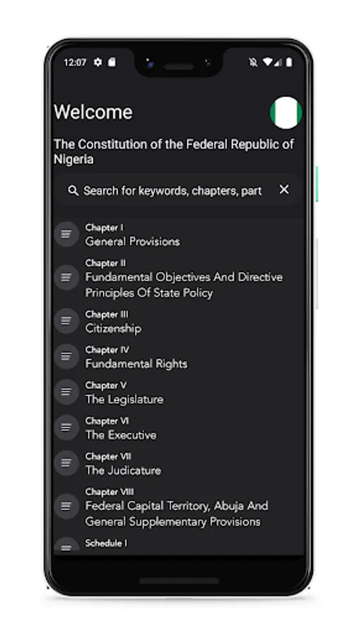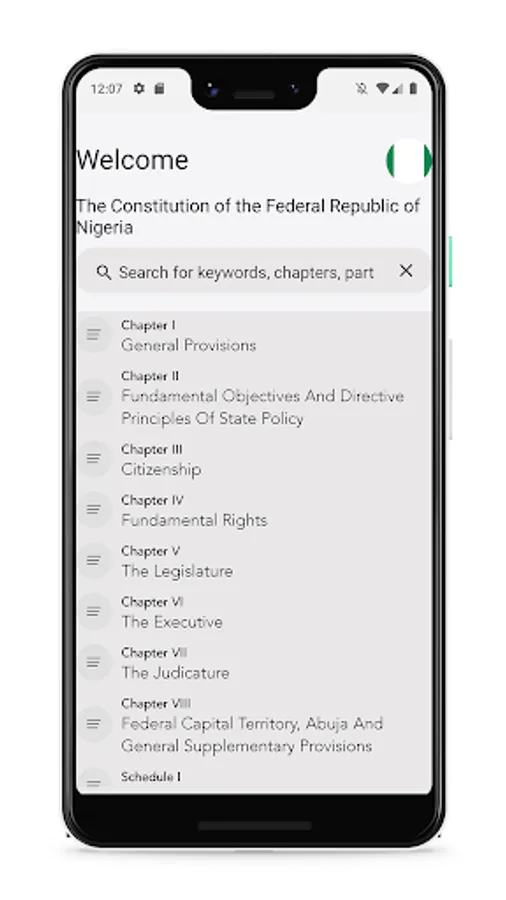 A highly accessible, easy to use app version of the Constitution of Nigeria the supreme law of the Federal Republic of Nigeria with it's 1st, 2nd and 3rd Amendments.