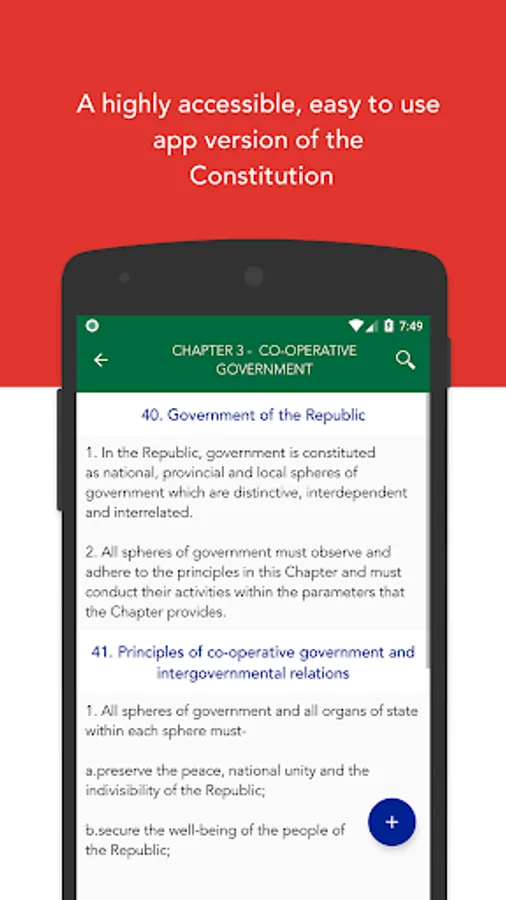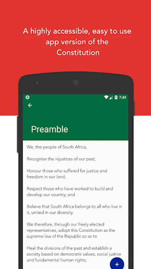 The Constitution of South Africa is the supreme law of the country of South Africa. It provides the legal foundation for the existence of the republic, sets out the rights and duties of its citizens, and defines the structure of the government.
