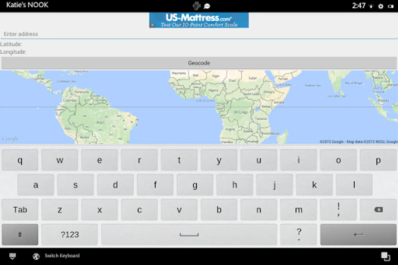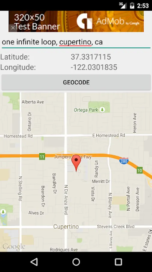 Allows users to geocode a location (get the latitude/longitude pair) for the address that is entered by the user.