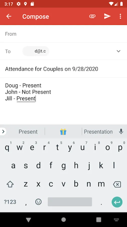 - An email can be sent for each meeting to a central contact to report small group attendance. The user can also use this email to provide any appropriate notes on content or prayer requests that might come up during that week's meeting.
