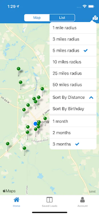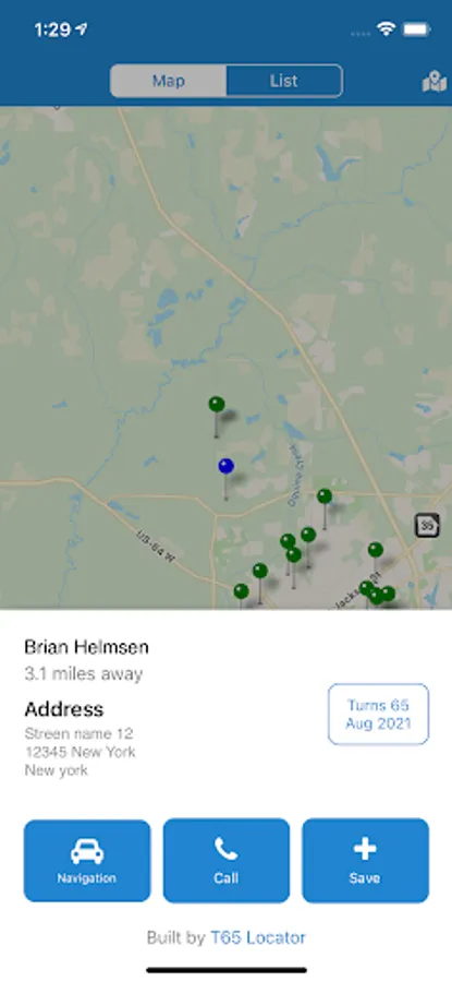 With our Turning 65 Mobile App to instantly identify everyone who is about to turn 65 near you. Their location and details are displayed on a map, allowing you to efficiently reach out, introduce yourself, and make contact. This app allows you to locate prospects turning 65 from where ever you are currently located at the touch of a button.