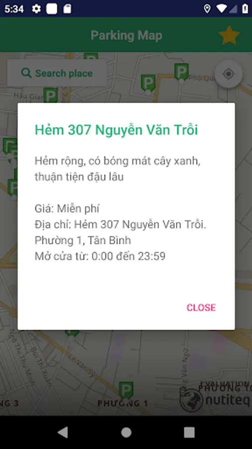 - When you open the application, you need to grant location access to the application, then every time you open the application on the map will automatically locate to your current location and display the parking lot near you. .