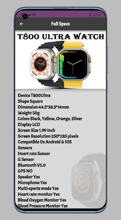 - Are you looking for features and details of a smartwatch of a typet800 ultra smart watch