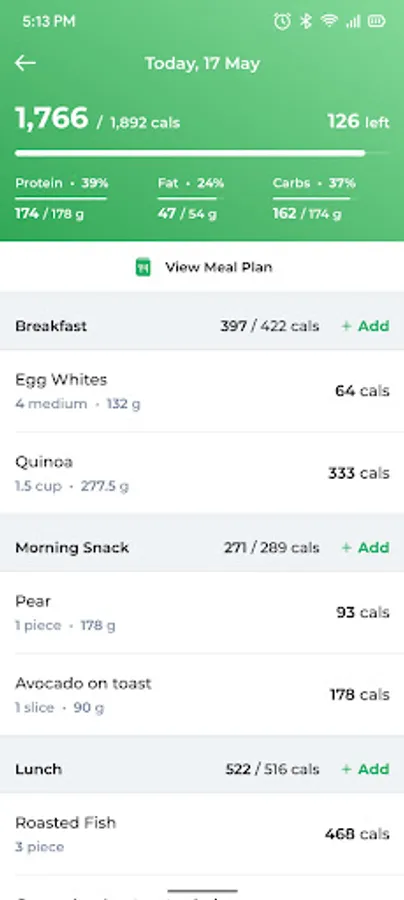food intake to keep a close track of your calorie intake and macros. You can also track