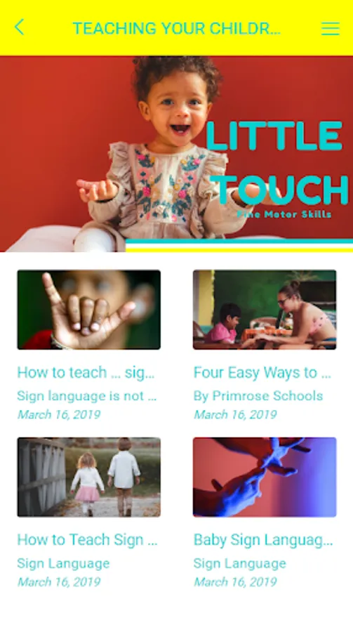 Samina Boyd the founder of the app Little Touch WELCOME! In this app you will be able to connect with other app users and also learn tips for teaching your child sign language. Thank you so much for downloading Little Touch app ENJOY!