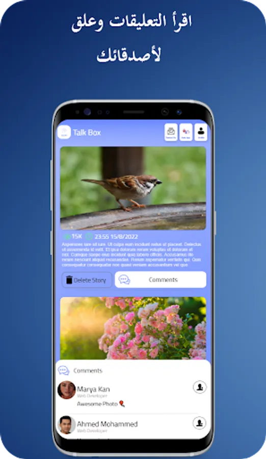 The application allows the user to enter without inserting his picture and real name to maintain confidentiality, the user can include his status on the home page in order to reach users who share the same interests.