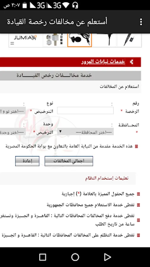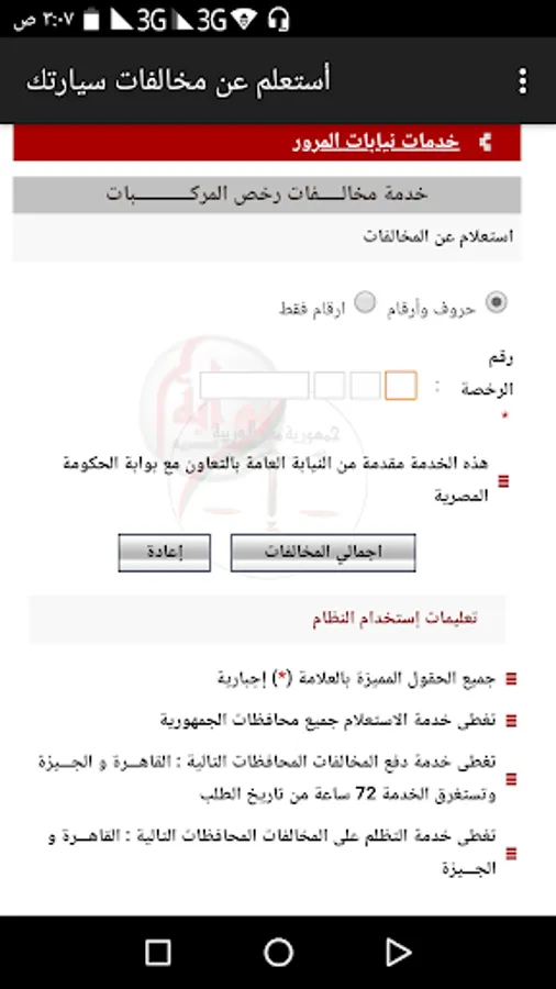 In this application, you can inquire about traffic violations for a driver's license or car license