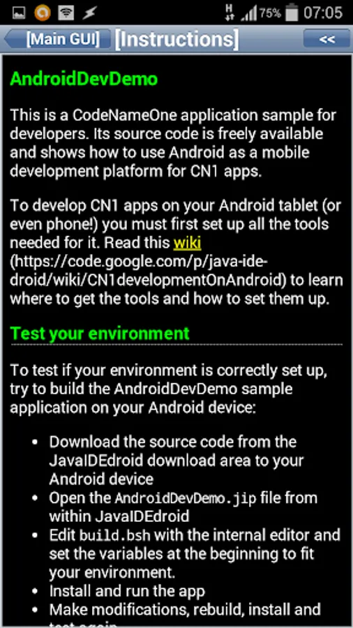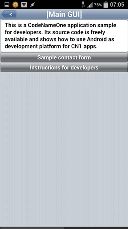 This app here is a developer sample which shows how to write, build and test Codename One applications on your Android device.