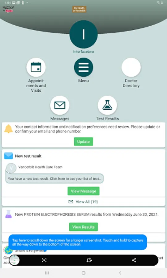 Access your current My Health at Vanderbilt account on the app to: