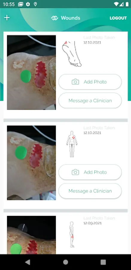 After Provider sees the Patient for wound care in Provider office, Provider sends secure email to Patient with links for downloading MyWoundDoctor APP by Patient and credentials to login to the APP. Patient enters Patient identification number and Patient (or supporting care giver) takes picture of existing or new wound and sends via APP to MyWoundDoctor. MyWoundDoctor provides wound care instructions to Patient through APP and delivers MyWoundDoctor® SupplyPak with wound care supplies to Patient, which includes directions (in English and Spanish) for using supplies and related website links to wound care supply instructional videos