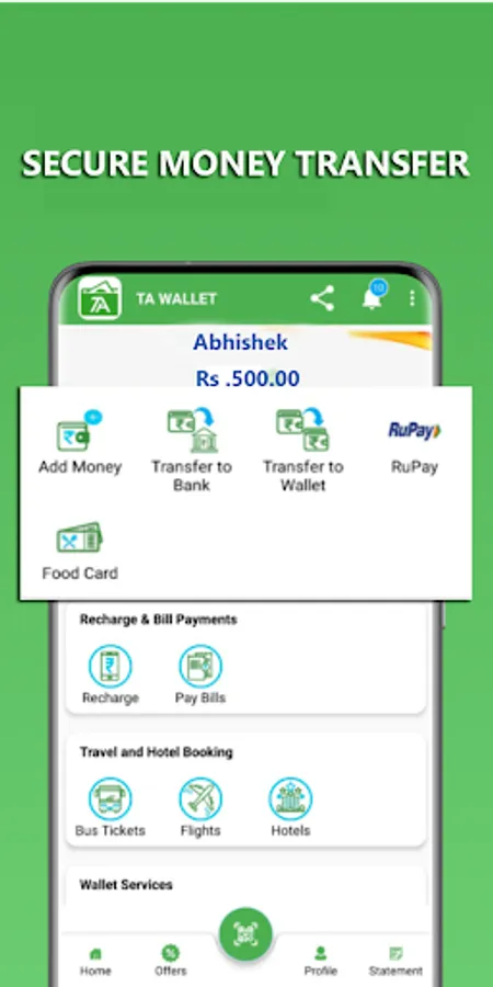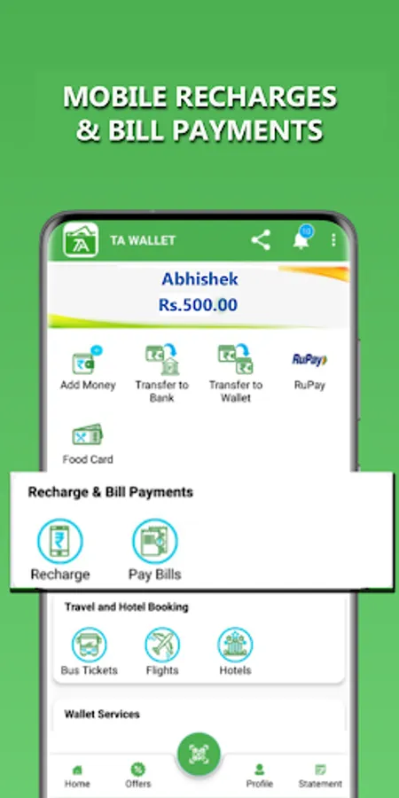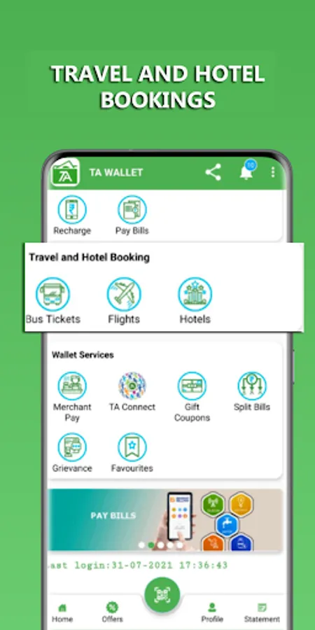 TA Wallet is a digital mobile wallet which can be used for cashless online payments. By using TA Wallet you can topup your mobile,pay postpaid, DTH, landline, Intenet, DataCard and Electricity bills.You can transfer money to another wallet or your bank account.