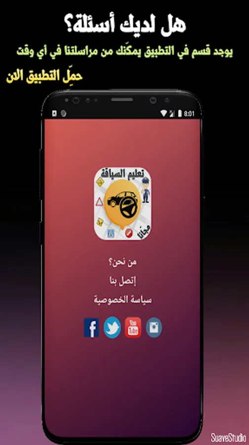 - هذا التطبيق بمثابة مدرسة تعليم السياقة ، إذا اعجبك التطبيق لا تبخل علينا بالمشاركة