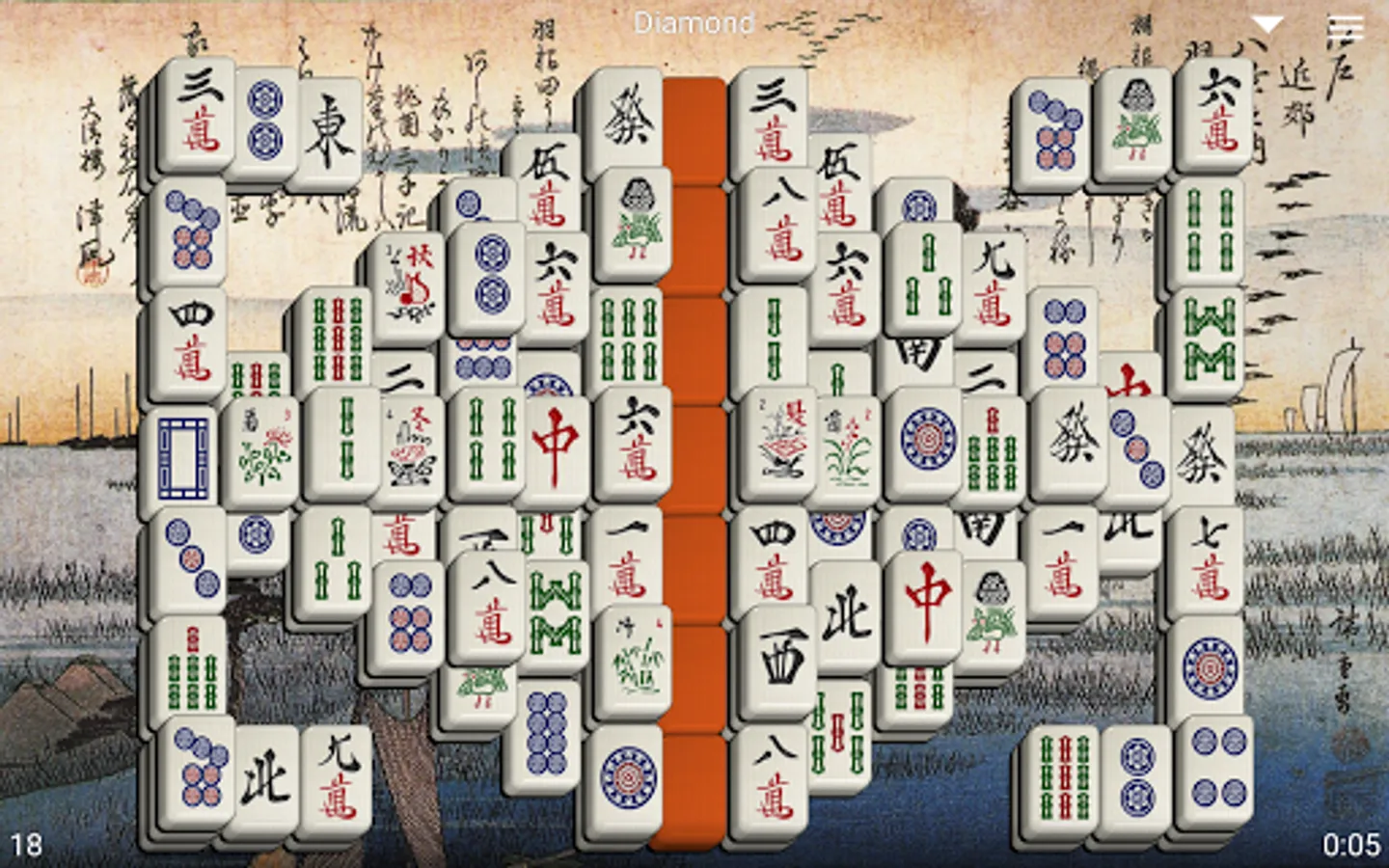 This version of Mahjong Genius has 180+ challenging layouts including "halves" games and "3-tile match" games (very difficult!). It has high-definition graphics and a host of exciting features and game modes, including blocking wall tiles and pseudo random layouts.