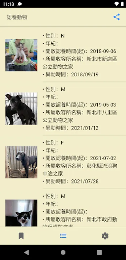 Taiwan Animal Adoption (TAA) app will randomly display 10 pen Taiwan's claim to be raising an animal, click on the item to open its details. Source using Taiwan "Animal unclaimed support" Open Data: