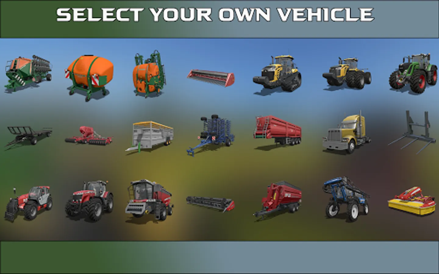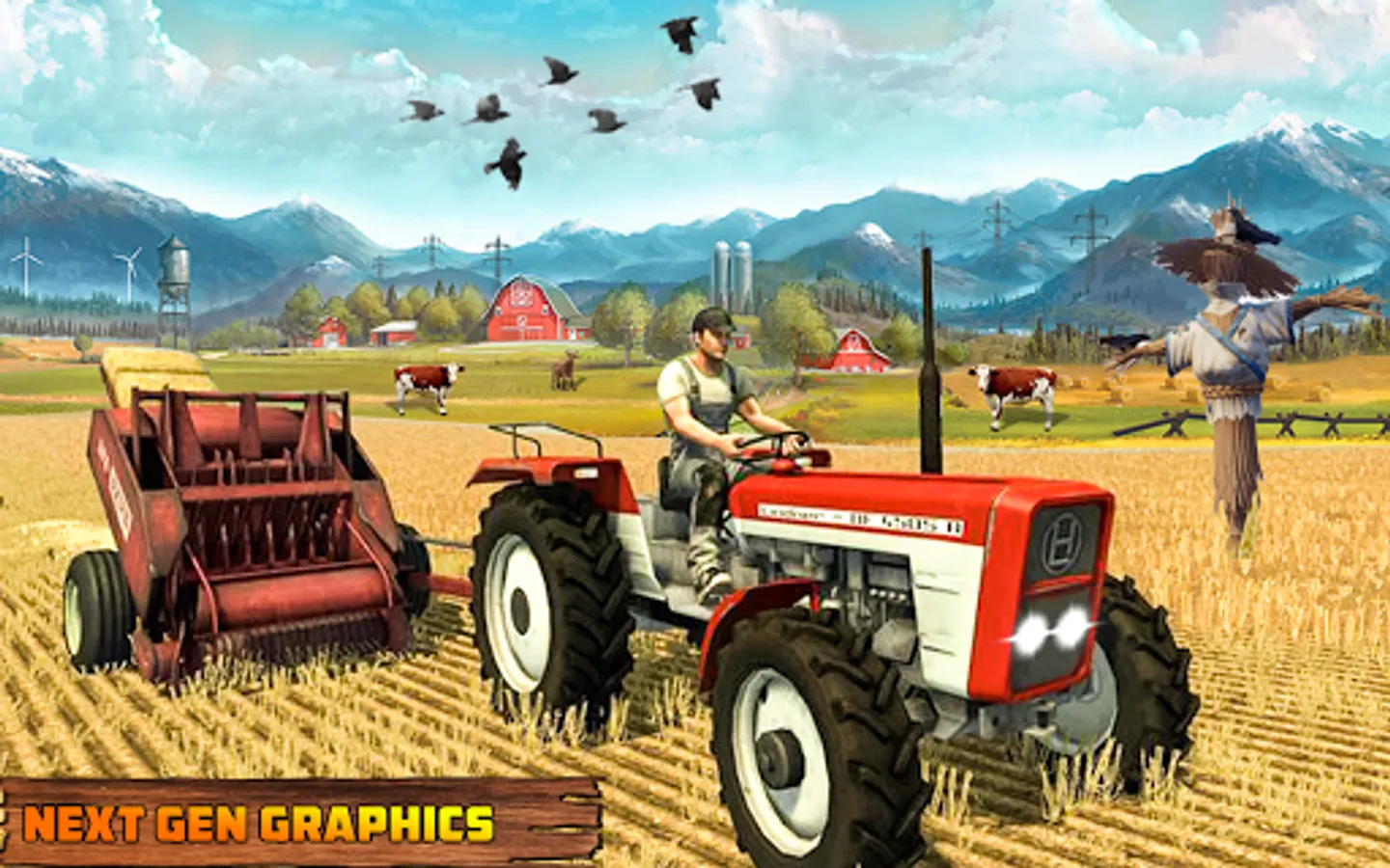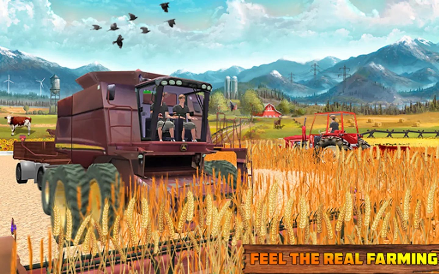 This farmer sim offers to drive real modern farming vehicles like tractors, cultivators, harvesters, plow machine, seed machine, water spray machine like a real new farmer do, also having horse carts driving sim. Your pet animals in your animals farms near grind mill will wait for food. Transport it in your cart to feed cows and goats.