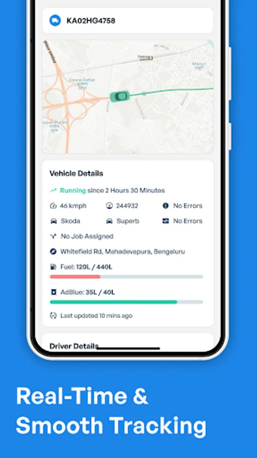 Live GPS Tracking: Track the precise location of your vehicles on a detailed map in real-time. Monitor their movements, routes, and stops effortlessly.