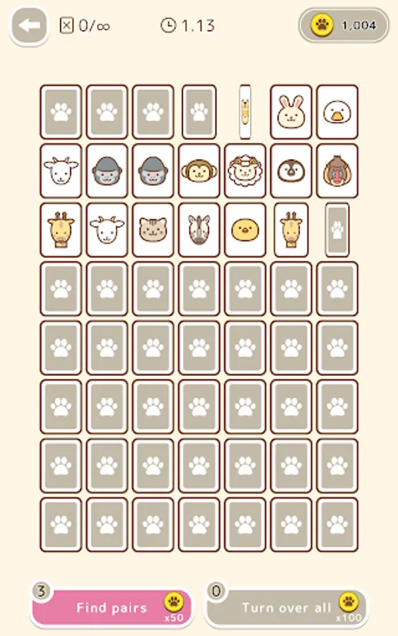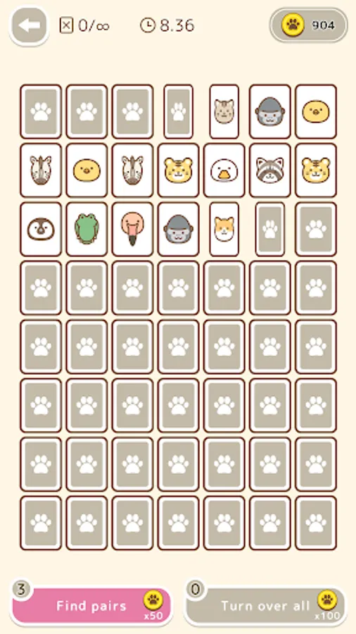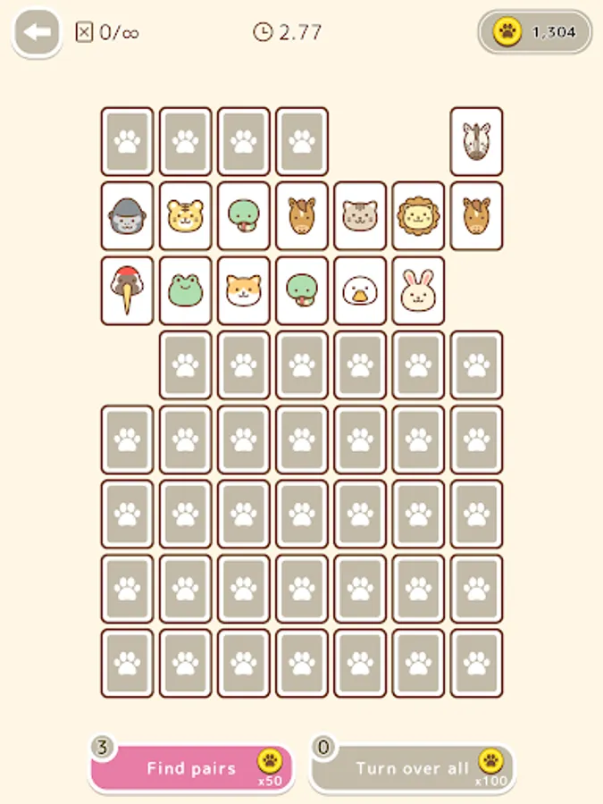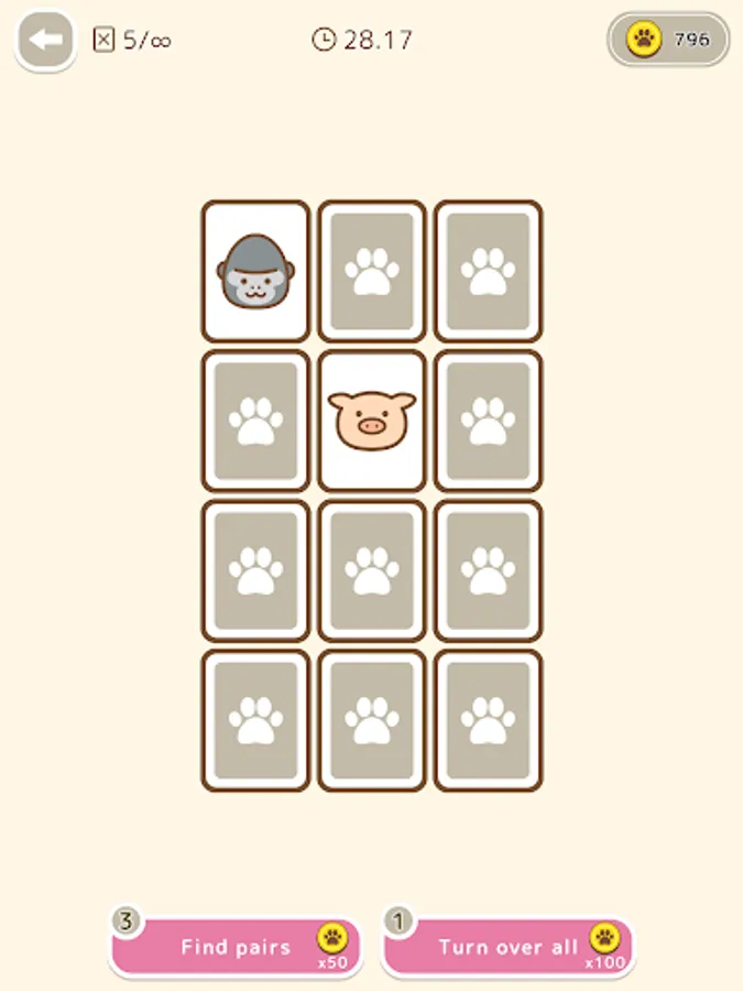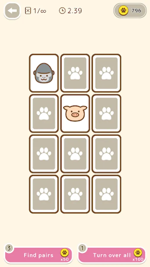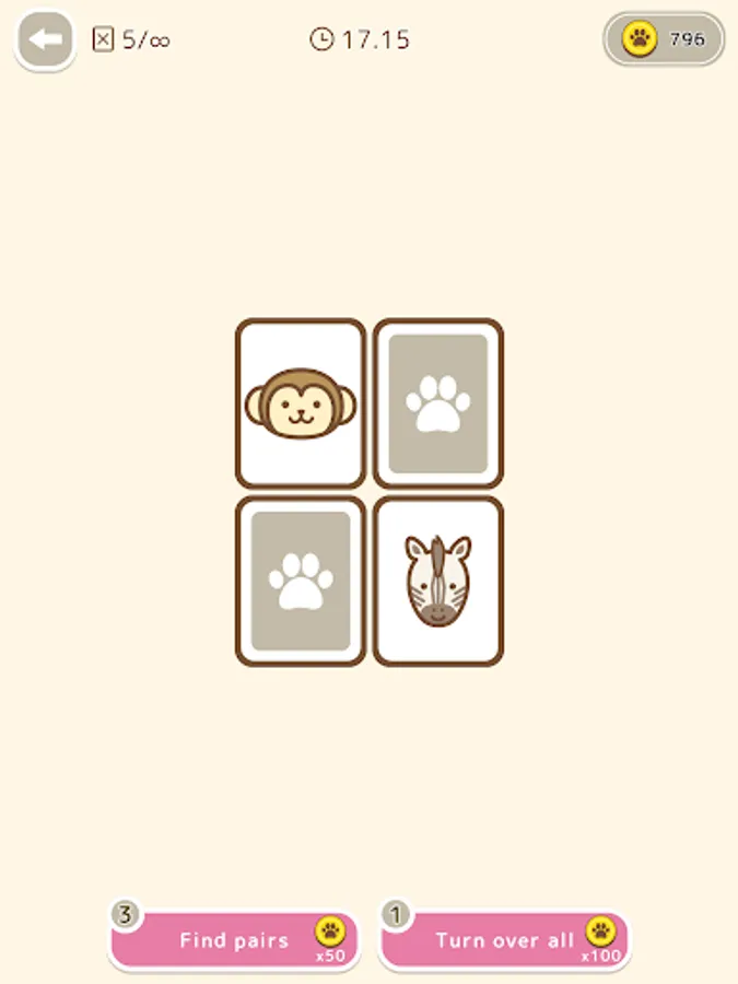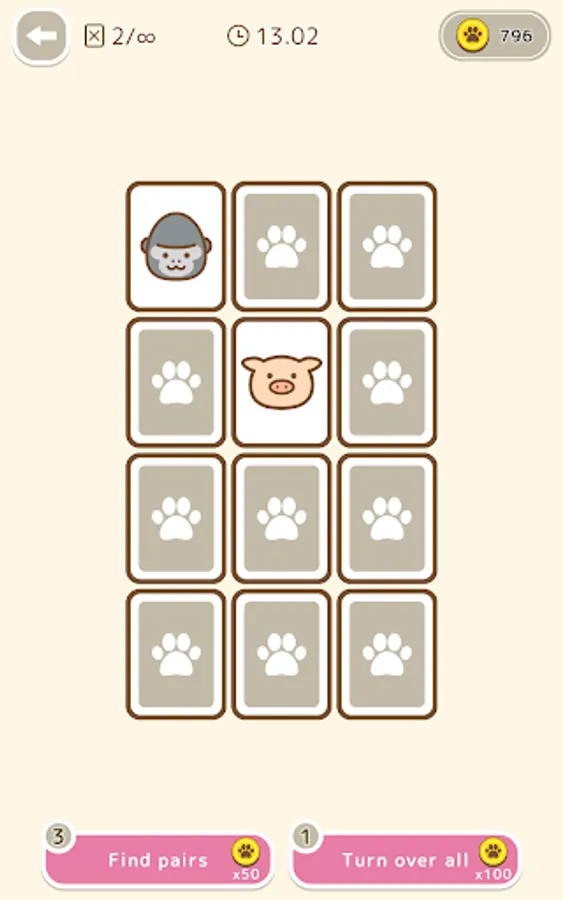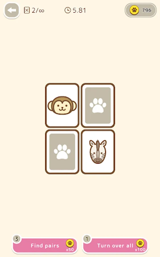 This is a classic card game in which you have to find the same animal pattern among the cards that have been flipped over.