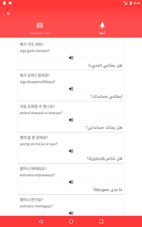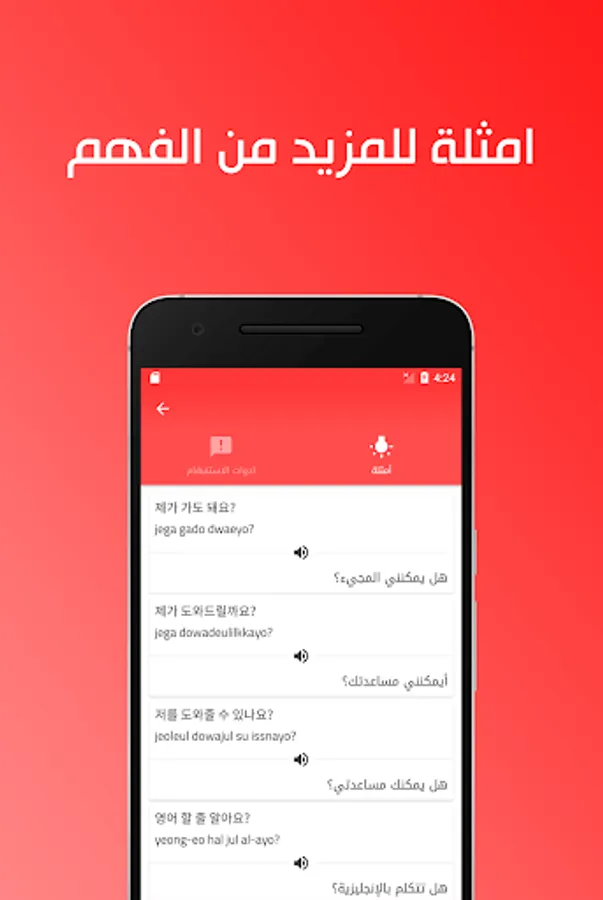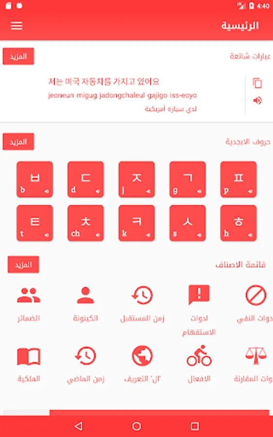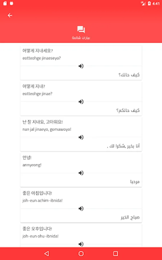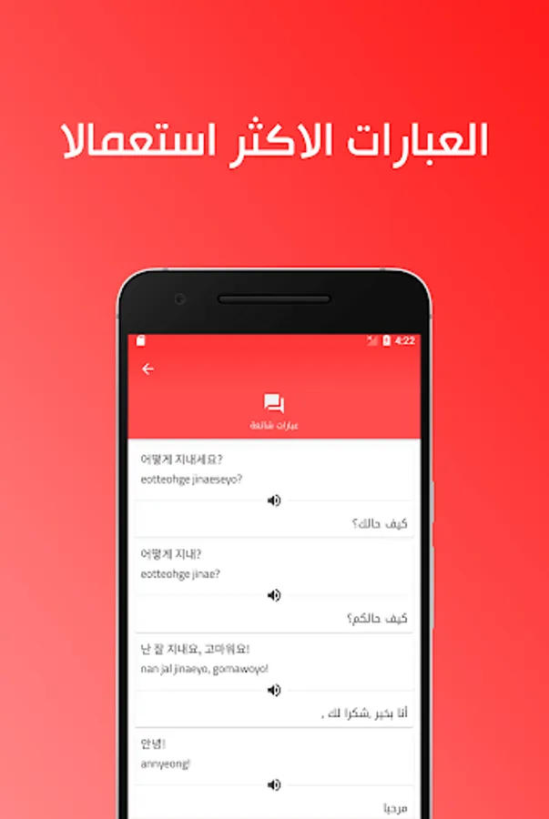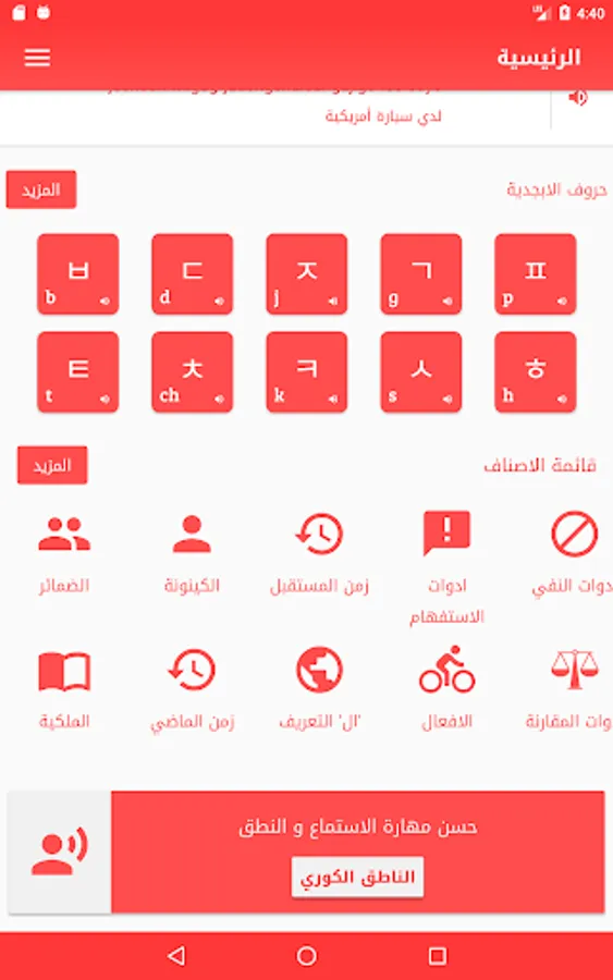 The application includes the Korean speaking section, which converts everything you write in the Korean language in the text field into a voice to learn the skill of listening and pronunciation. There is another feature that we have added to the application, which is the voice feature that allows you to click on any word or phrase and hear how it is pronounced to learn Korean by voice.