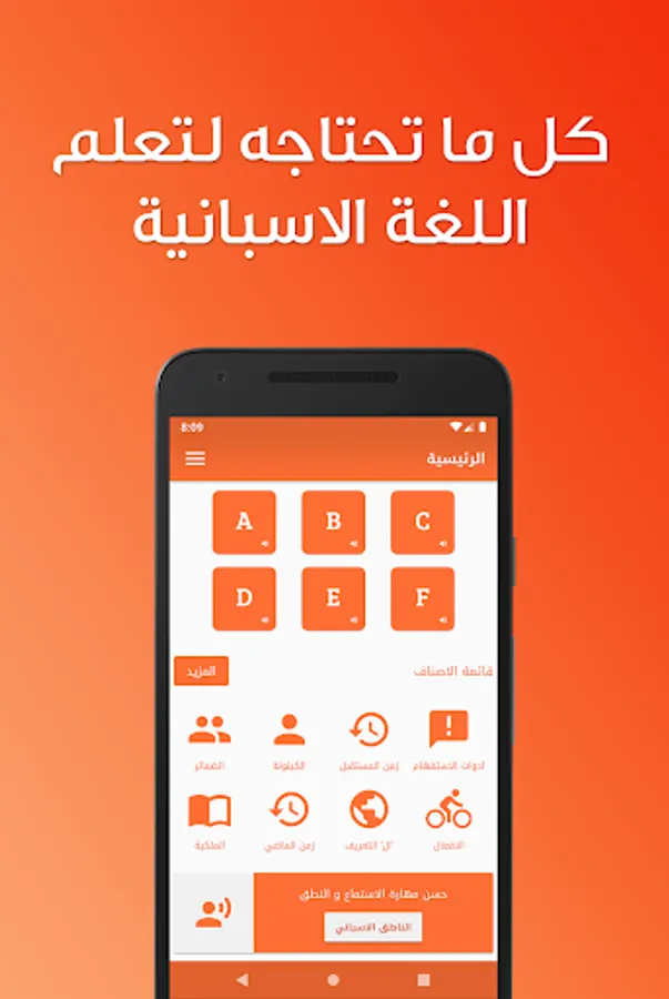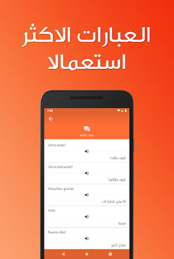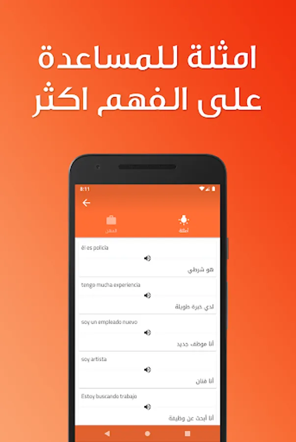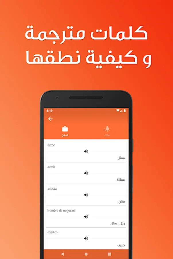 It also contains a section that includes a large group of the most used phrases in the Spanish language translated into Arabic and the most important Spanish words. If you want to master the Spanish language, you must repeat the phrases every day and understand the lessons well and you will notice a great development in speaking Spanish.