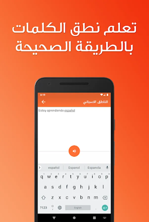 The application includes the Spanish speaking section, which converts everything you write in the Spanish language in the text field into a voice to learn the skill of listening and pronunciation.