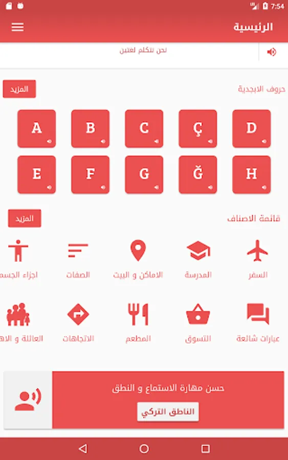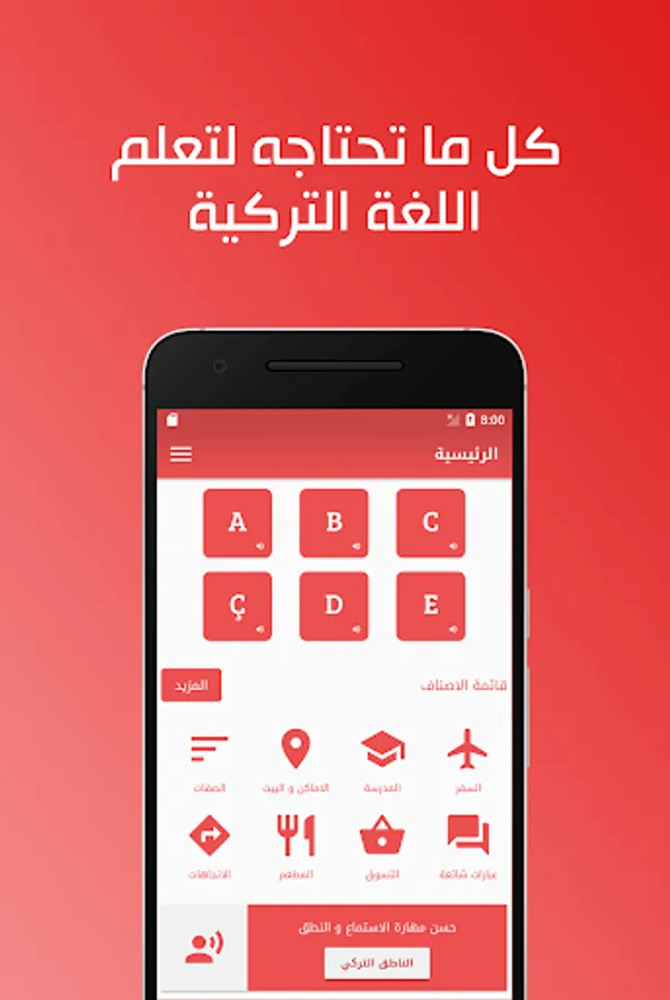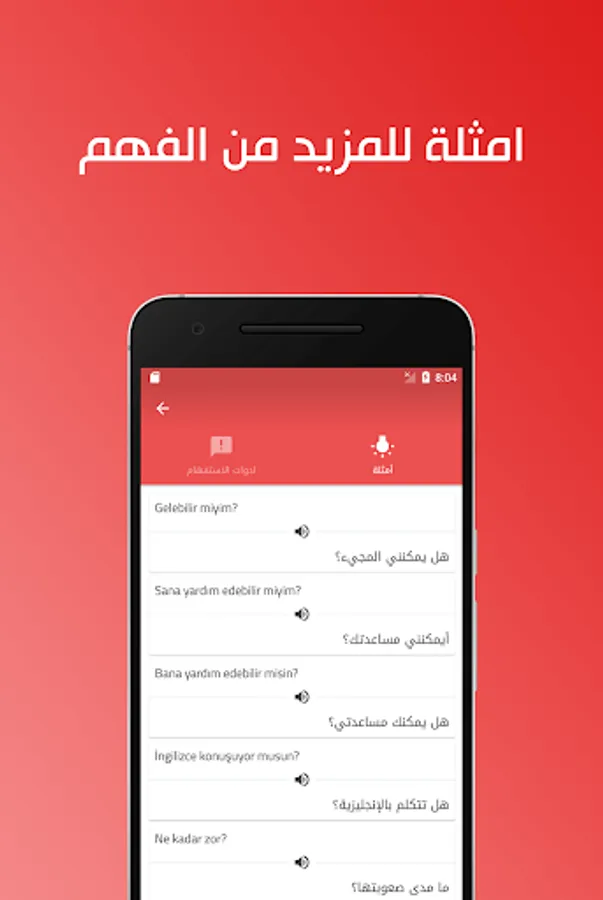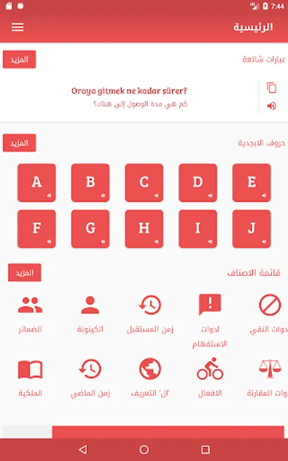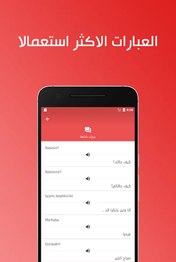 And a section that includes a large group of the most used phrases in the Turkish language translated into Arabic. If you want to master the Turkish language, you must repeat the phrases every day and understand the lessons well and you will notice a wonderful development in mastering Turkish.