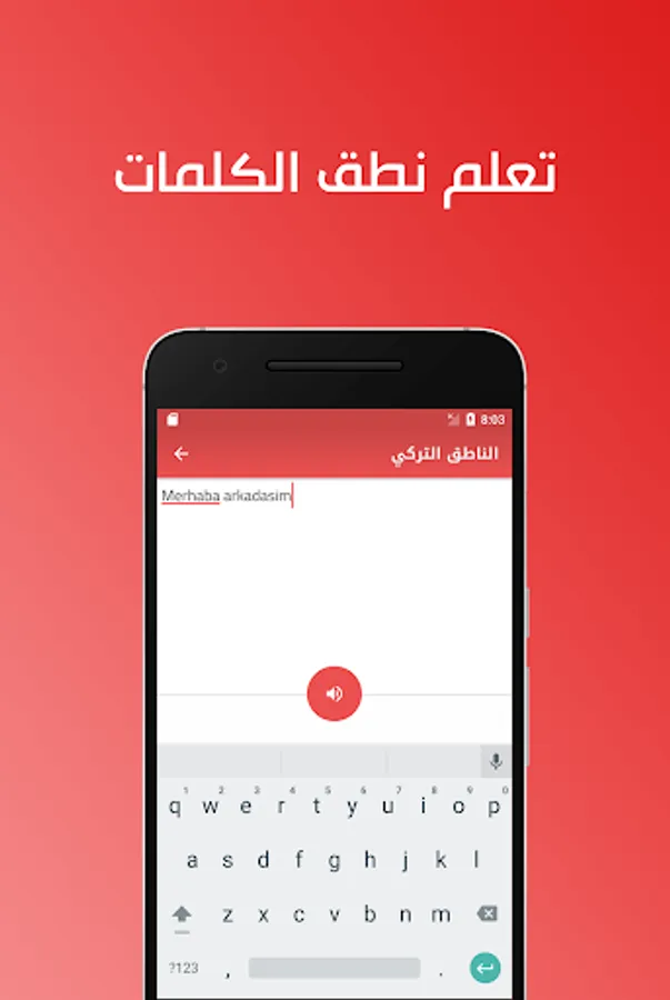The application includes the Turkish speaking section, which converts everything you write in the Turkish language in the text field into a sound to learn the skill of listening and pronunciation.