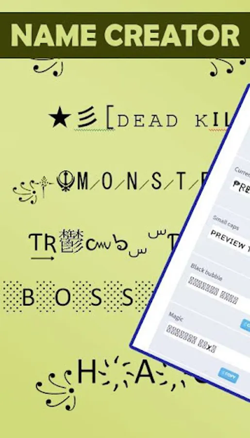 Just create or generate your name then modify them as you want, copy it and paste it into your favorite game or social network.