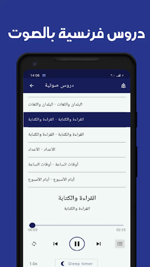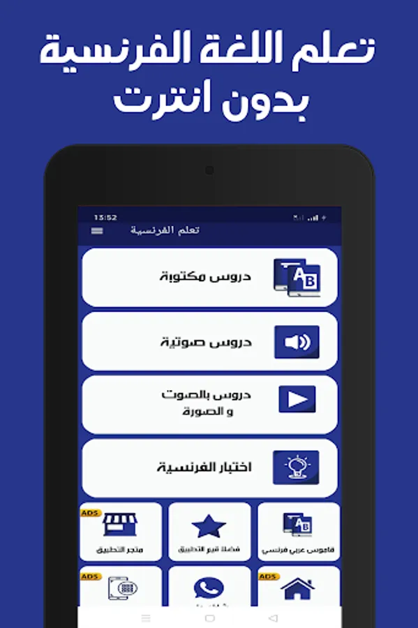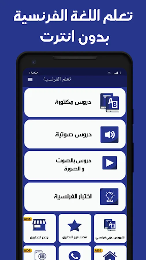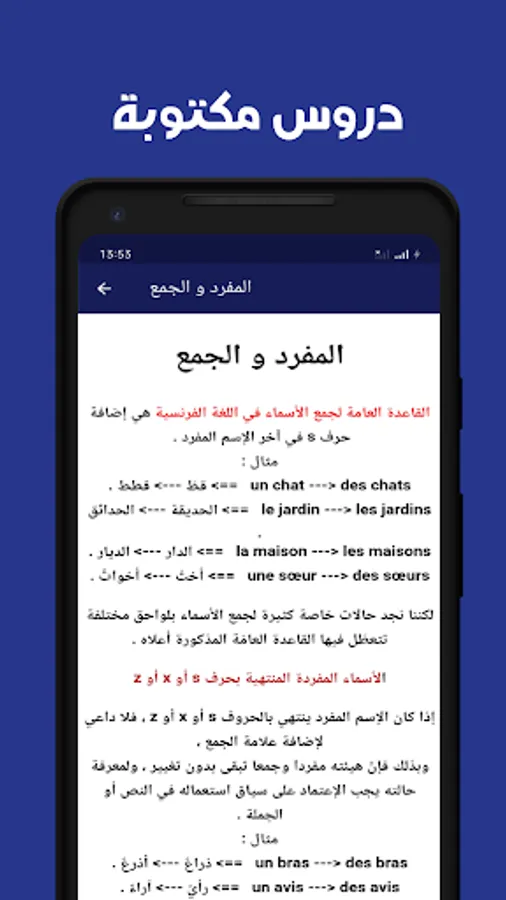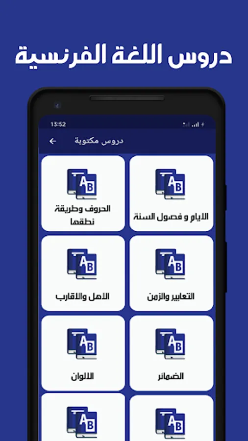 The application of the French language teaching book is a comprehensive book that contains several lessons and exercises such as (support lessons without the Internet, daily French language lessons, and exercise books to understand the basic rules). This application also contains simple, easy and new ways to understand letters and communicate in addition to pronouncing letters and books Explanation of grammar rules and education