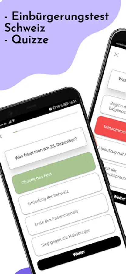 Comprehensive Coverage: The "Swiss Citizenship Test" app contains a wide range of questions tailored to the requirements of the Swiss citizenship test. Whether you want to focus on the Living in Switzerland module or the Politics and History module, we have you covered.