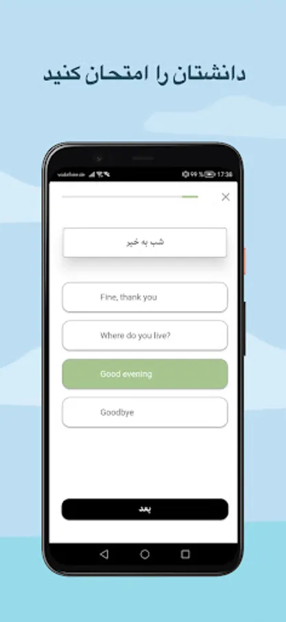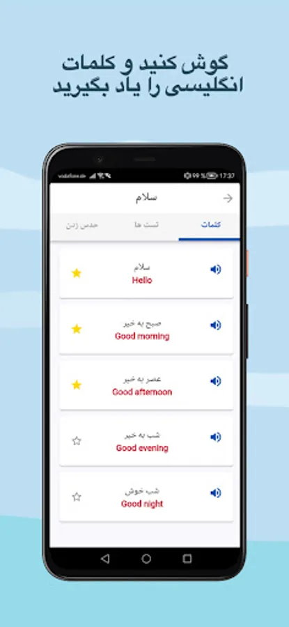 - English grammar, vocabulary and daily conversation tests. You will gradually learn and confidently progress through your various levels.