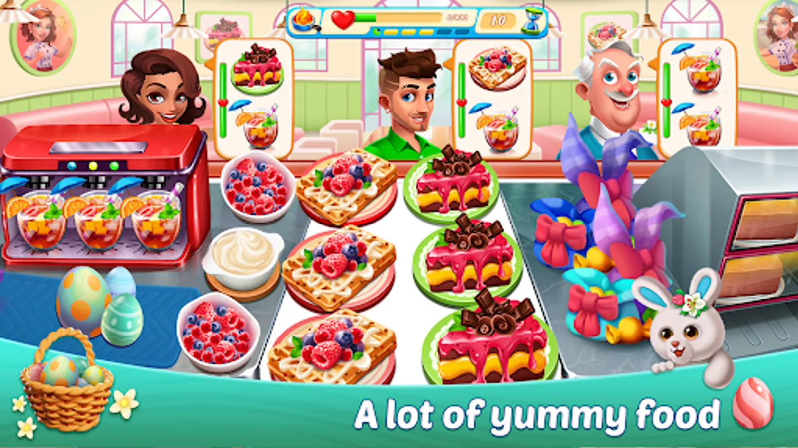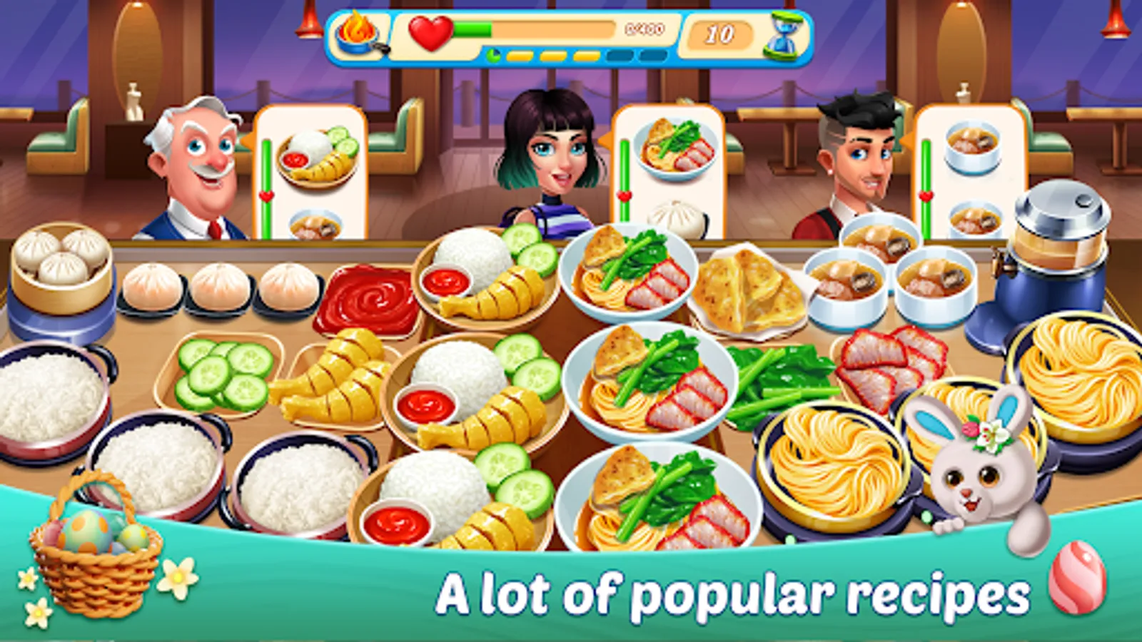 Improve cooking ingredients and introduce more innovative recipes to fantastic guests. Along with preparing increasingly sophisticated dishes🥘, you will boost your revenue and advance through all stages.