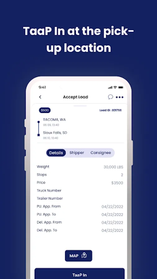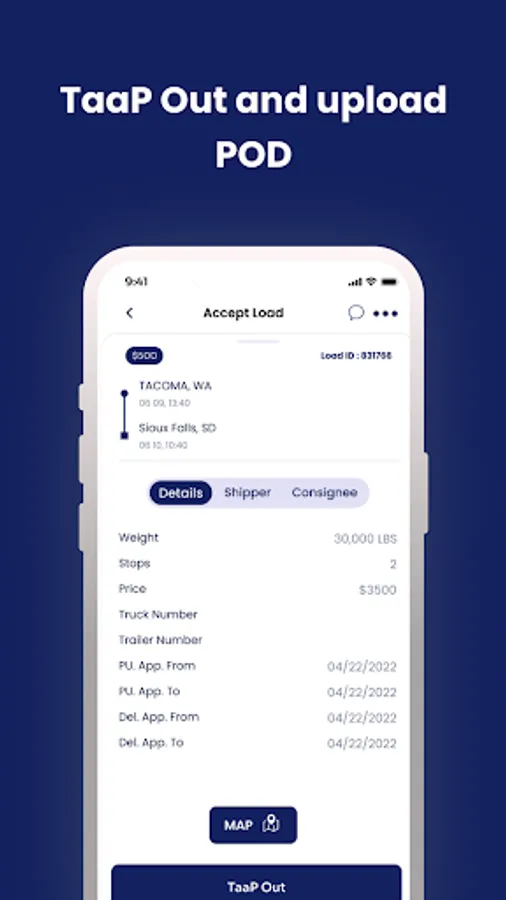 TAPP is the only universal application that connects shippers, consignees and carriers all on the same technology platform offering real time updates on load status, ETA and exception alerting. TAAP is also the interface to the TAAP Loadboard where carriers can accept loads off the public load board at no charge and no brokerage fees. Additionaly TAAP offers the carrier Quik Pay a real time Load Factoring service that can automatically get the carrier paid within 72 hours. Inside the TAAP application provide both shipper and consignee with POD images, and documents for faster turnaournd time on invoicing or invoice directly through the Empower web application. TAAP also supports last mile delivery with non signature photo POD for future reference.
