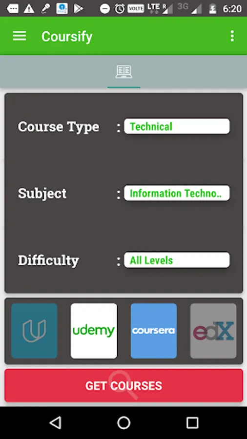 • Filter your courses on the basis of difficulty, course provider and even technicality!