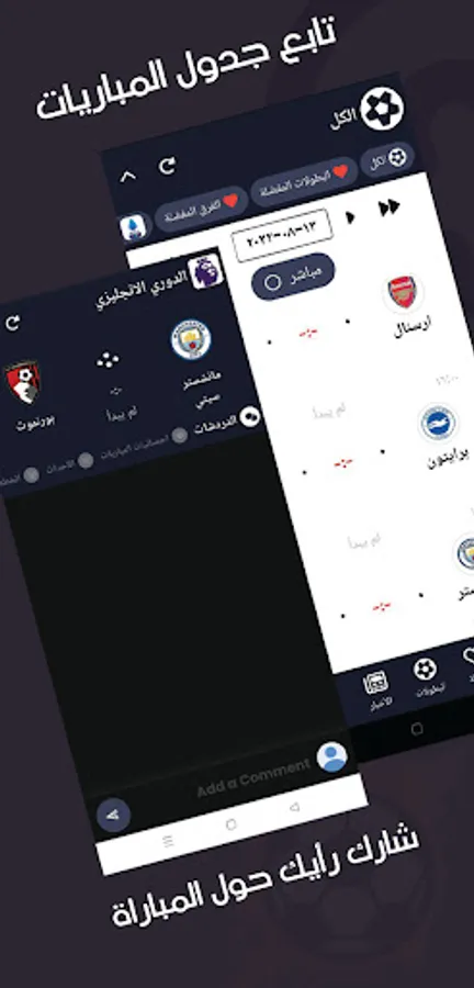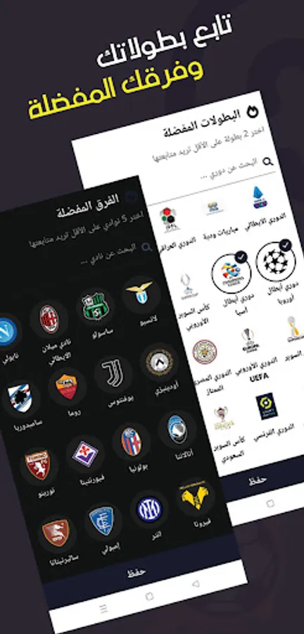 - Private follow-up of your favorite teams and their match schedule