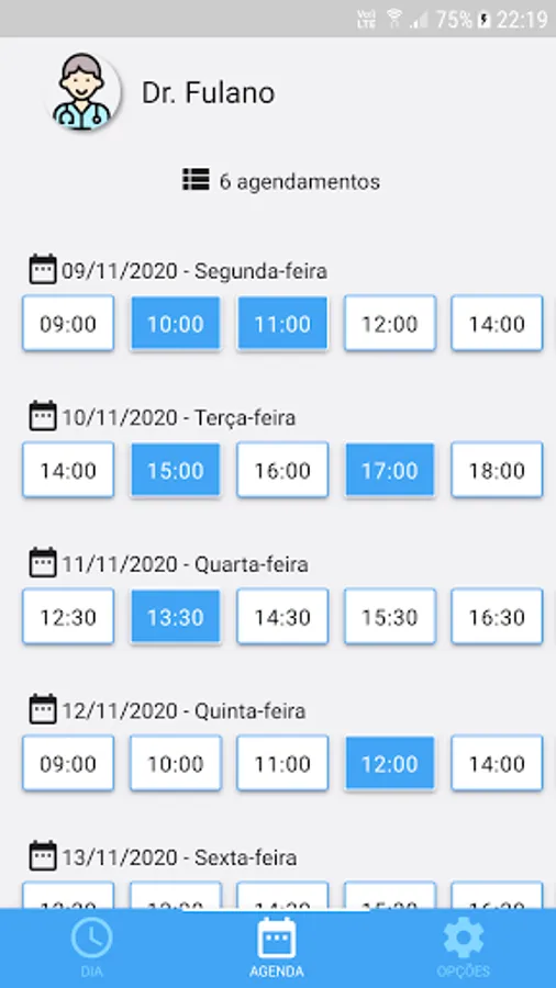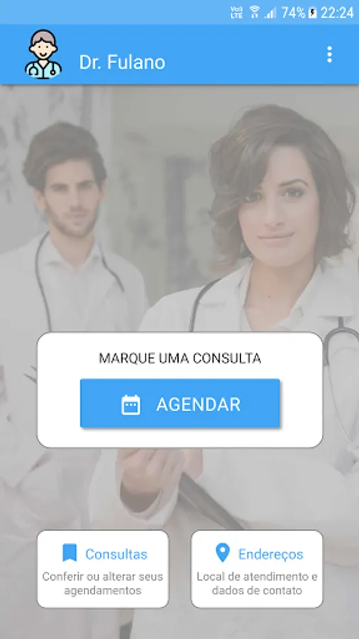 This app is customized to be the professional's own app, with its name, its colors, its image and, of course, its timetable.