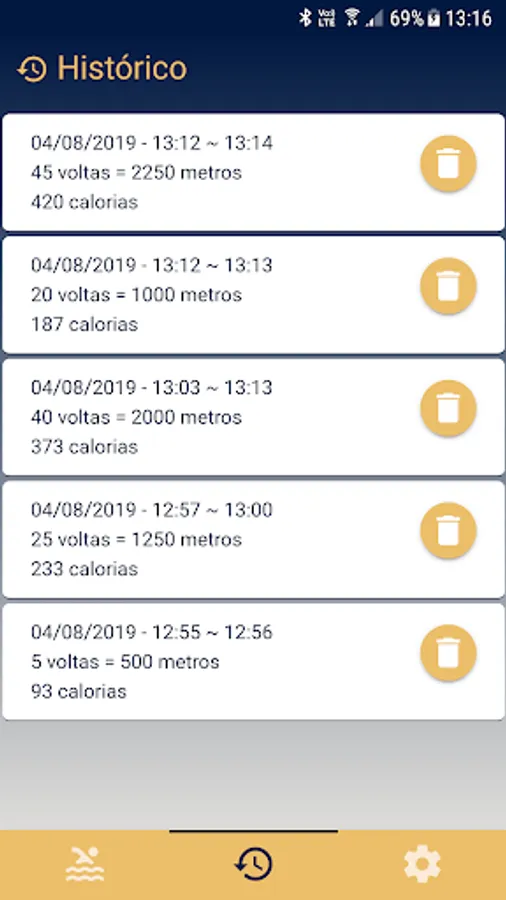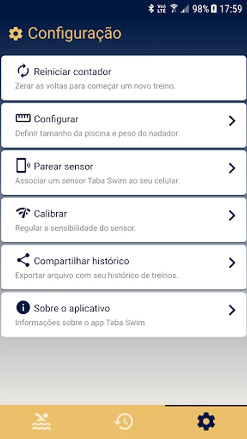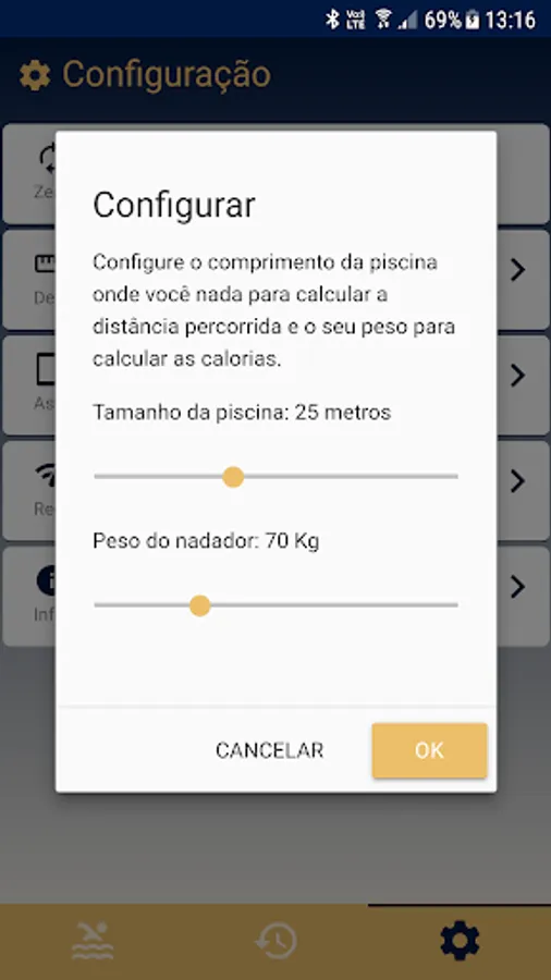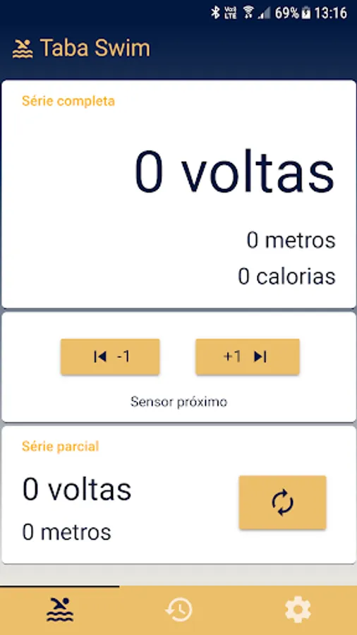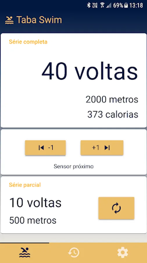 The application calculates the number of laps traveled in the pool through a distance sensor that communicates with the cell phone via Bluetooth.