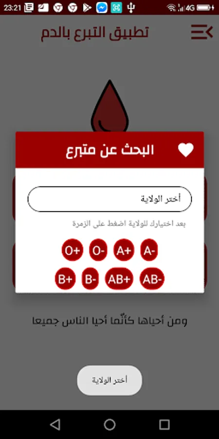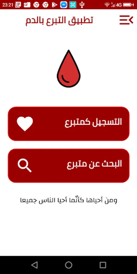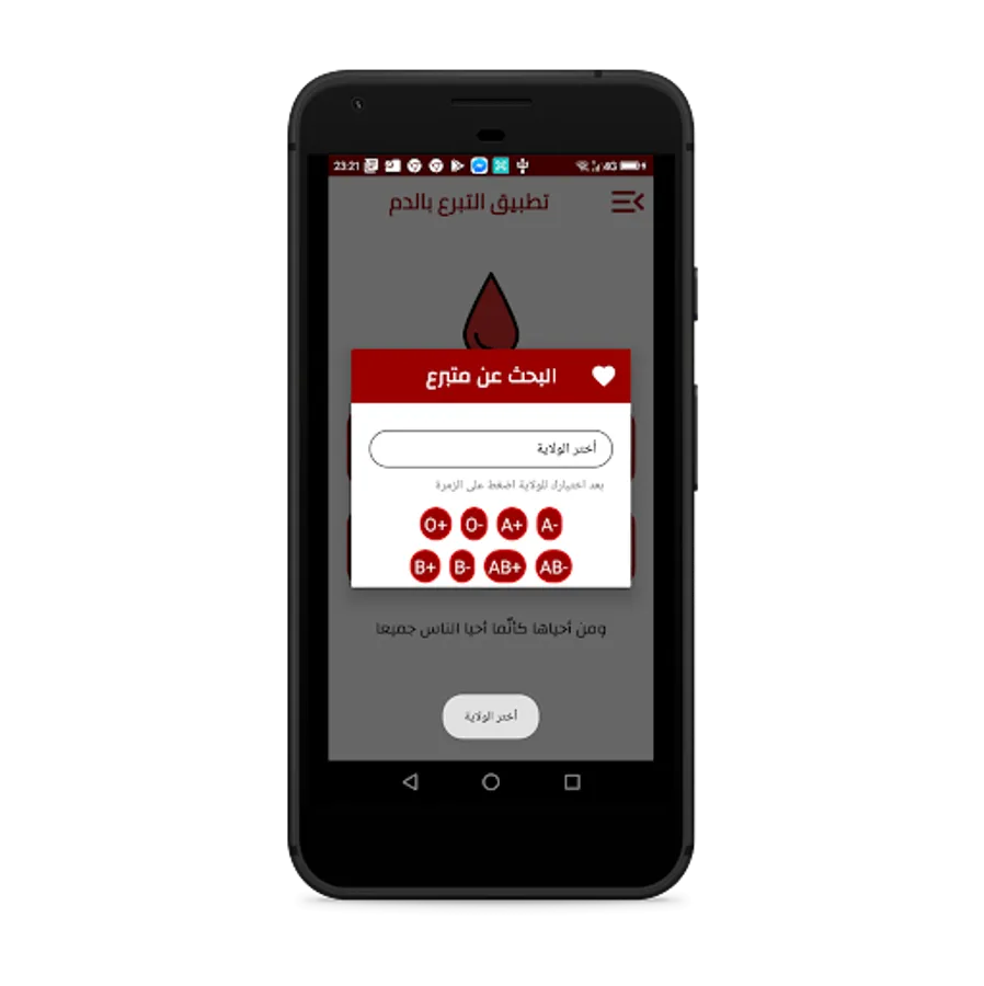 An application that can be downloaded for free on a cell phone, helps establish the link between the person who needs blood and the person who can donate blood, which saves the trouble of searching for a blood donor. The application respects international and local standards. Through the application, a person may be able to call or message the donor